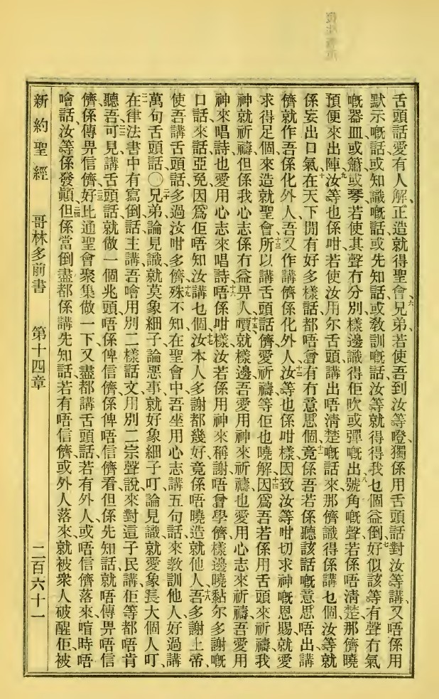 1923年新舊約全書 哥林多前書 14 章 5 節到 14 章 24 節
