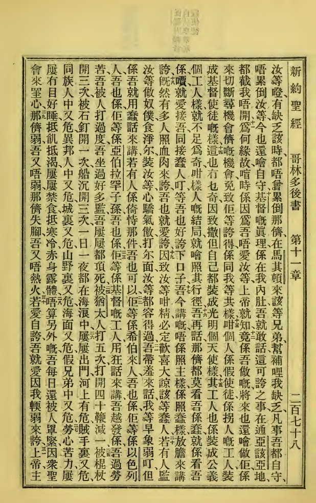 1923年新舊約全書 哥林多後書 11 章 9 節到 11 章 31 節