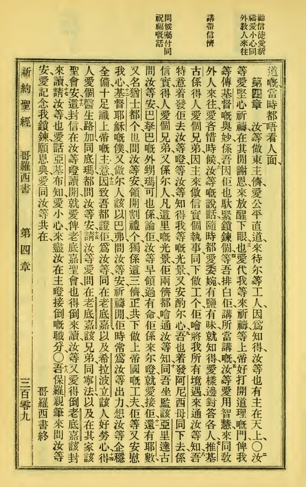 1923年新舊約全書 歌羅西書 3 章 25 節到 4 章 18 節