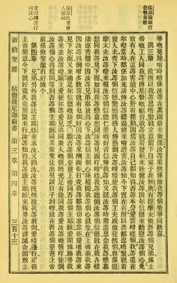 1923年新舊約全書 帖撒羅尼迦前書 2 章 19 節到 4 章 3 節