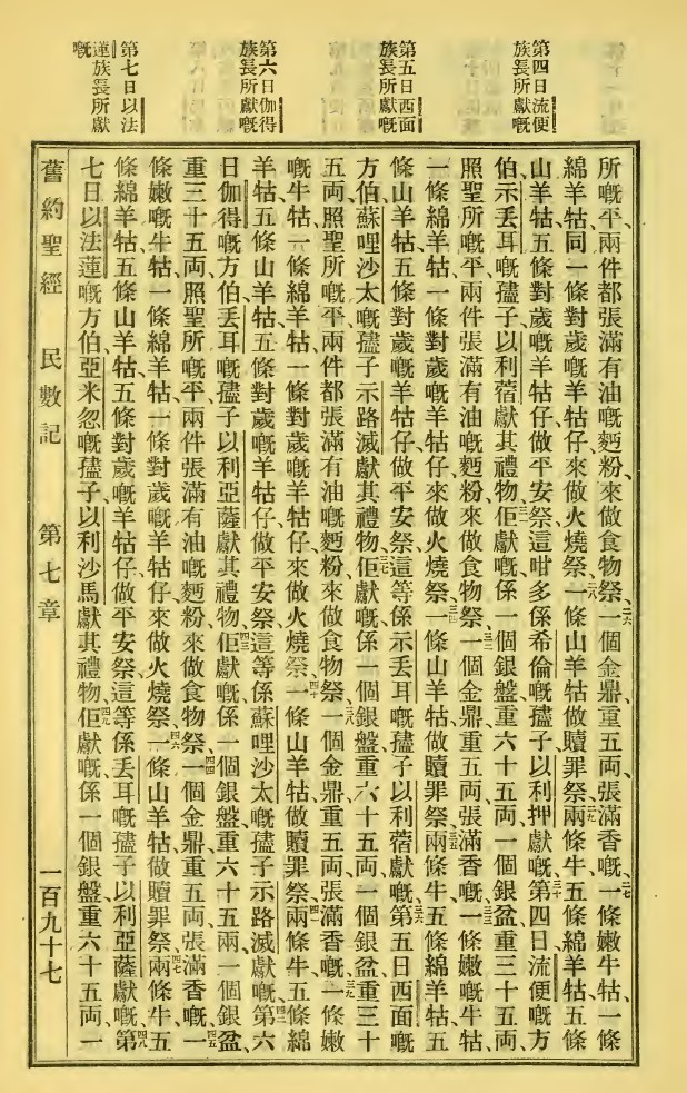 1923年新舊約全書 民數記 7 章 26 節到 7 章 49 節