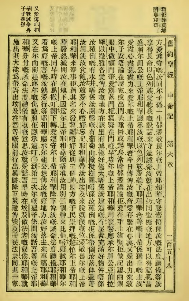 1923年新舊約全書 申命記 6 章 2 節到 6 章 22 節