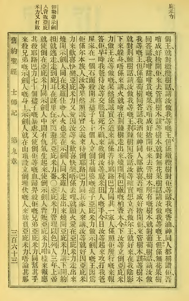 1923年新舊約全書 士師記 9 章 9 節到 9 章 25 節