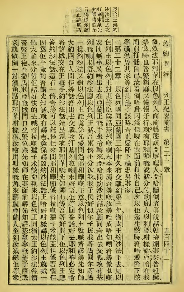 1923年新舊約全書 列王紀上 21 章 27 節到 22 章 12 節