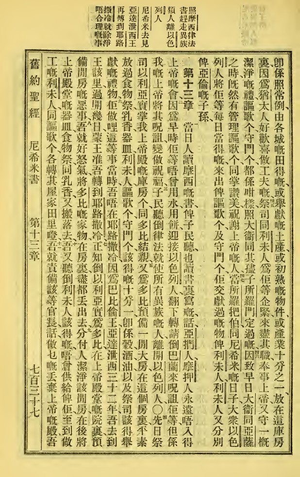 1923年新舊約全書 尼希米記 12 章 44 節到 13 章 11 節