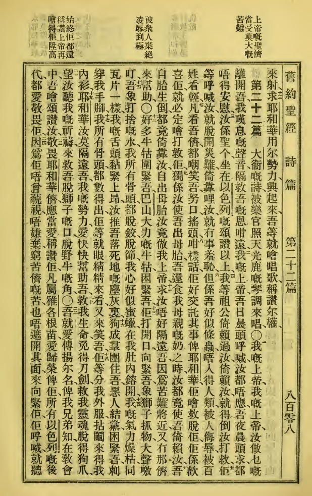 1923年新舊約全書 詩篇 21 章 12 節到 22 章 24 節