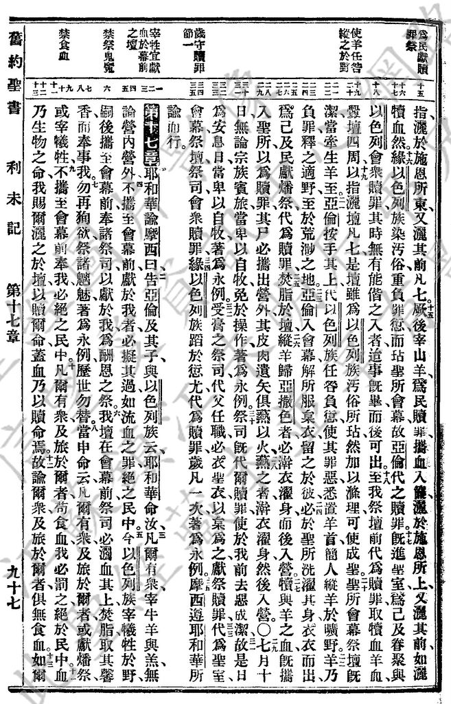1927年新舊約全書(委辦譯本) 利未記 16 章 15 節到 17 章 13 節