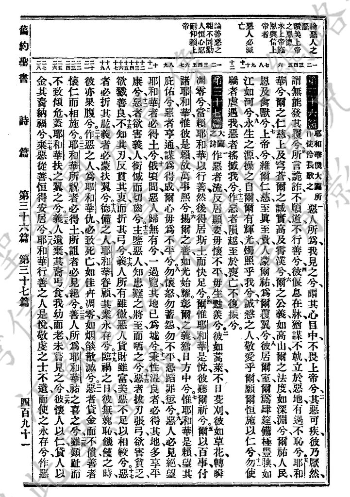 1927年新舊約全書(委辦譯本) 詩篇 36 章 1 節到 37 章 28 節