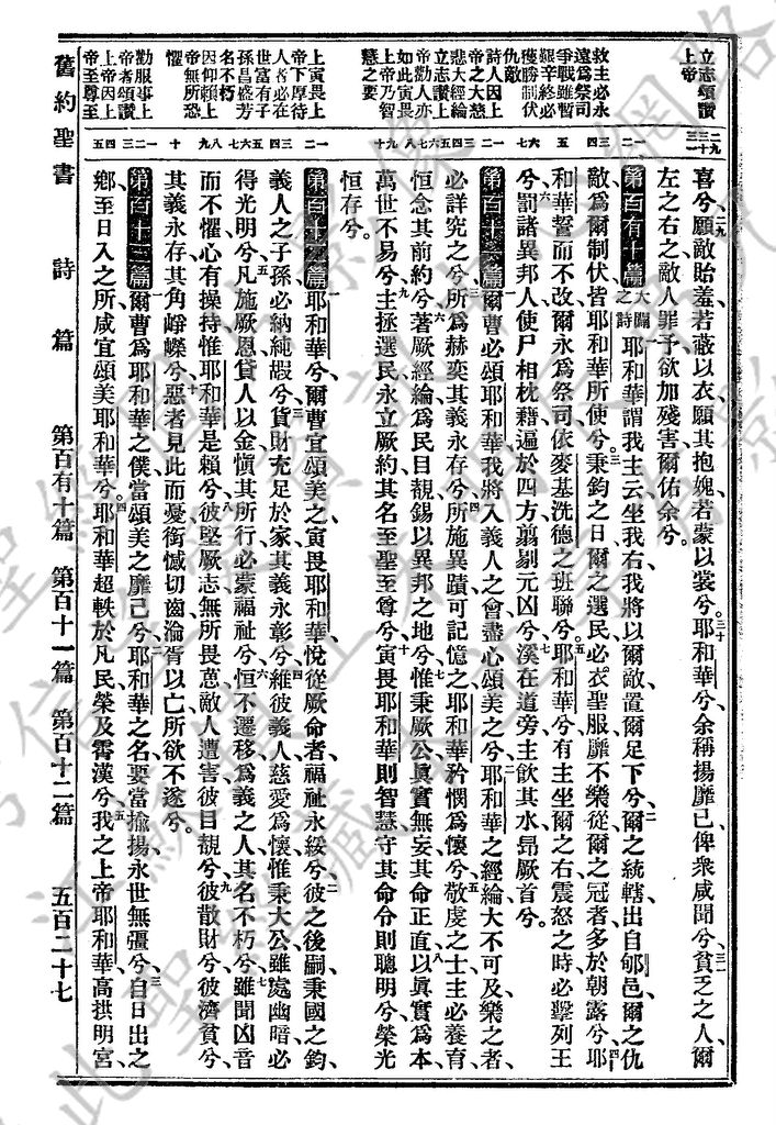 1927年新舊約全書(委辦譯本) 詩篇 109 章 29 節到 113 章 5 節