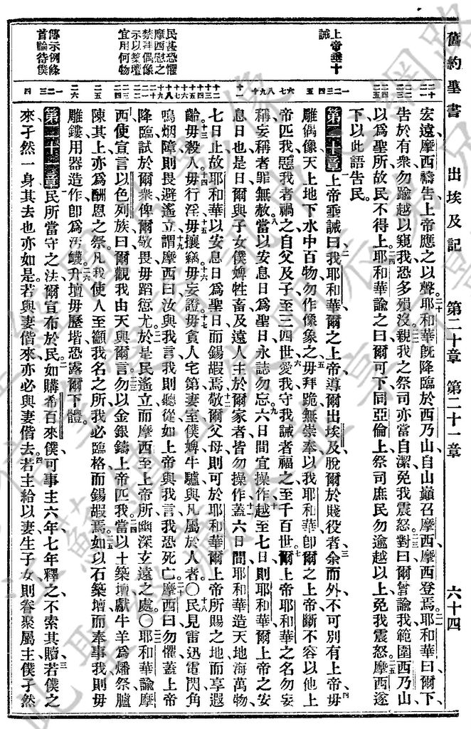 1927年新舊約全書(委辦譯本) 出埃及記 19 章 20 節到 21 章 4 節