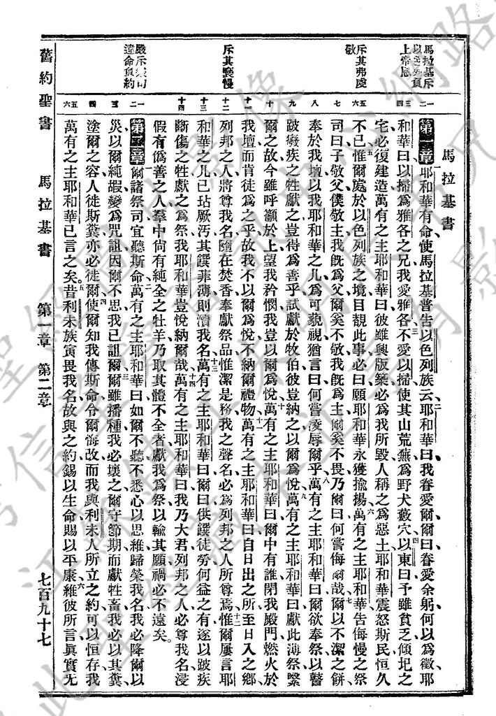 1927年新舊約全書(委辦譯本) 瑪拉基書 1 章 1 節到 2 章 6 節