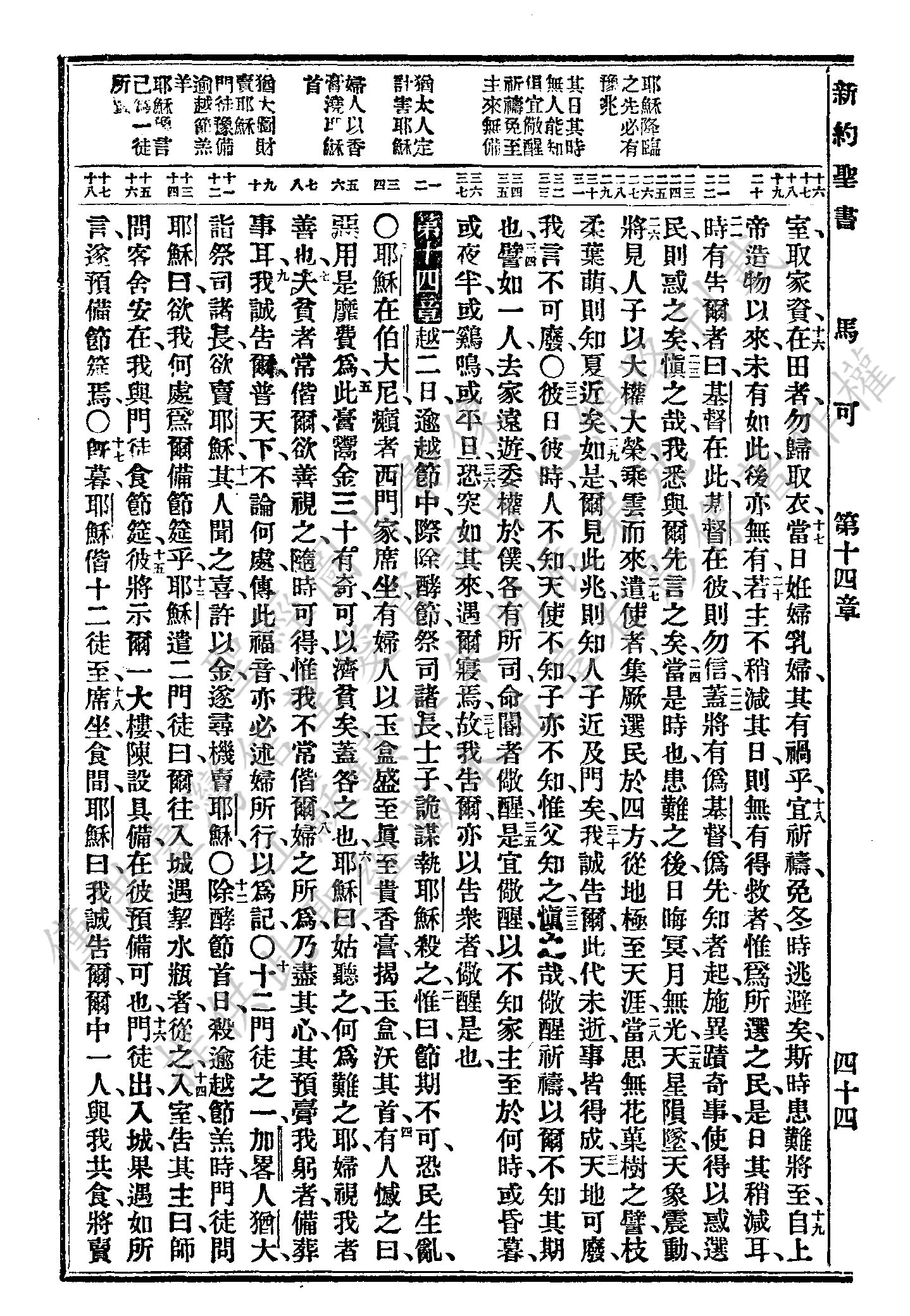 1927年新舊約全書(委辦譯本) 馬可福音 13 章 16 節到 14 章 18 節