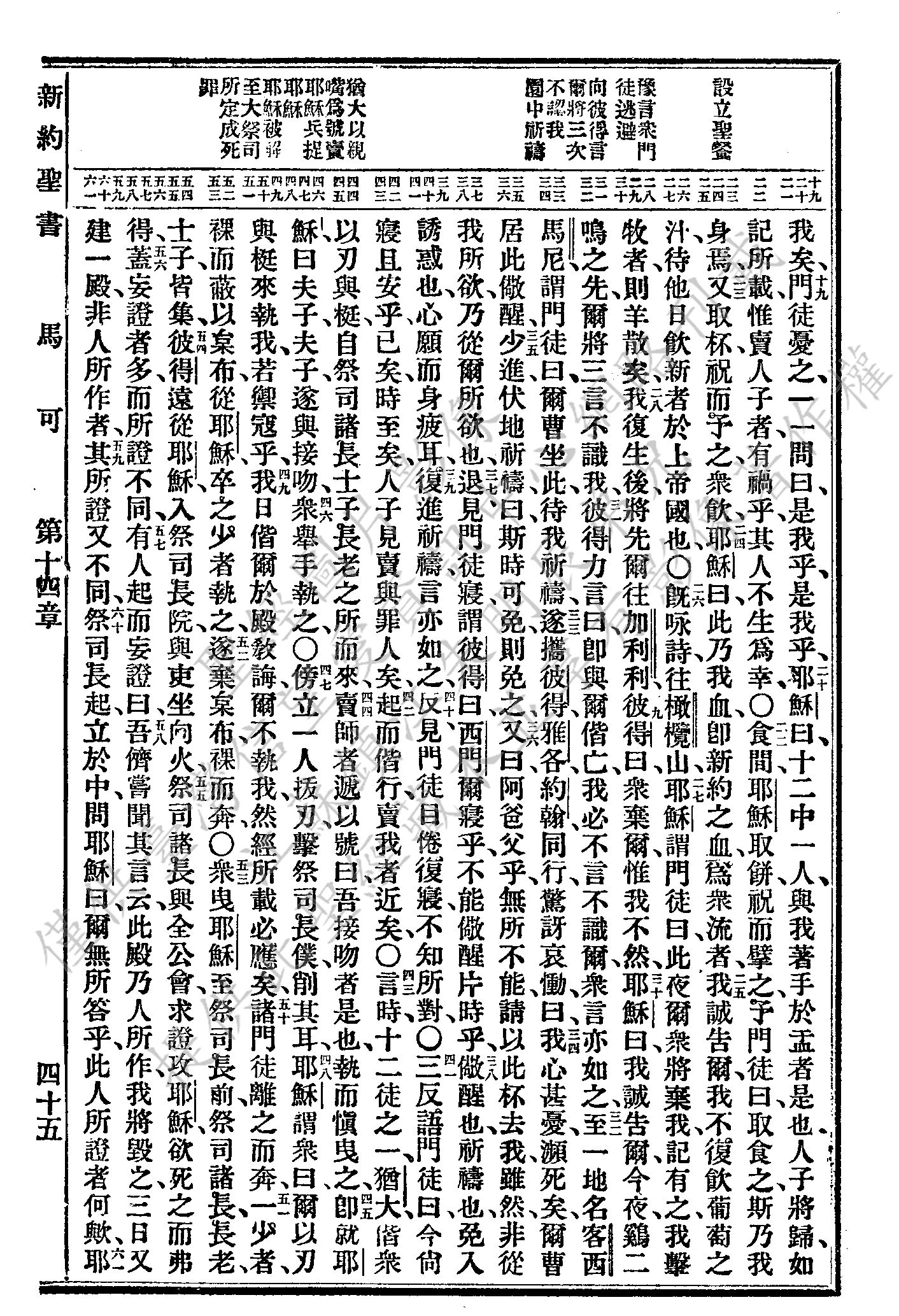 1927年新舊約全書(委辦譯本) 馬可福音 14 章 19 節到 14 章 61 節