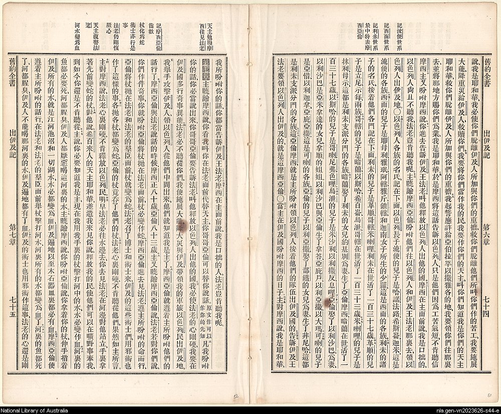 1874年舊約全書 出埃及記 6 章 7 節到 7 章 2 節