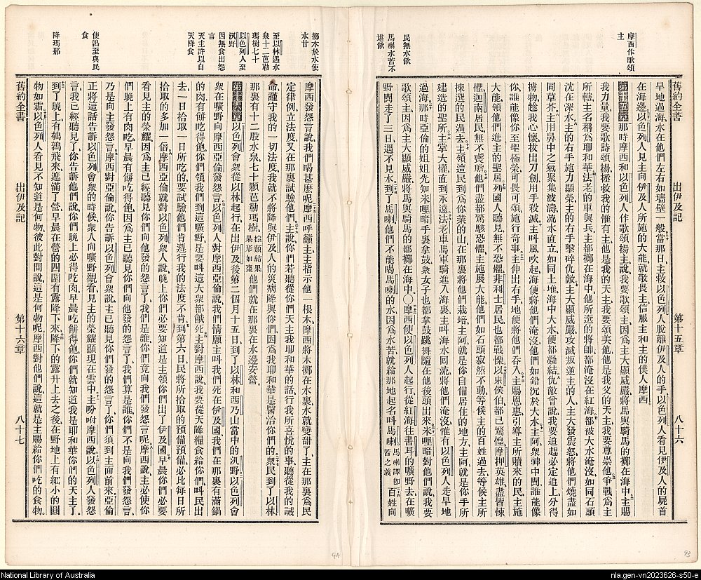 1874年舊約全書 出埃及記 14 章 30 節到 16 章 15 節