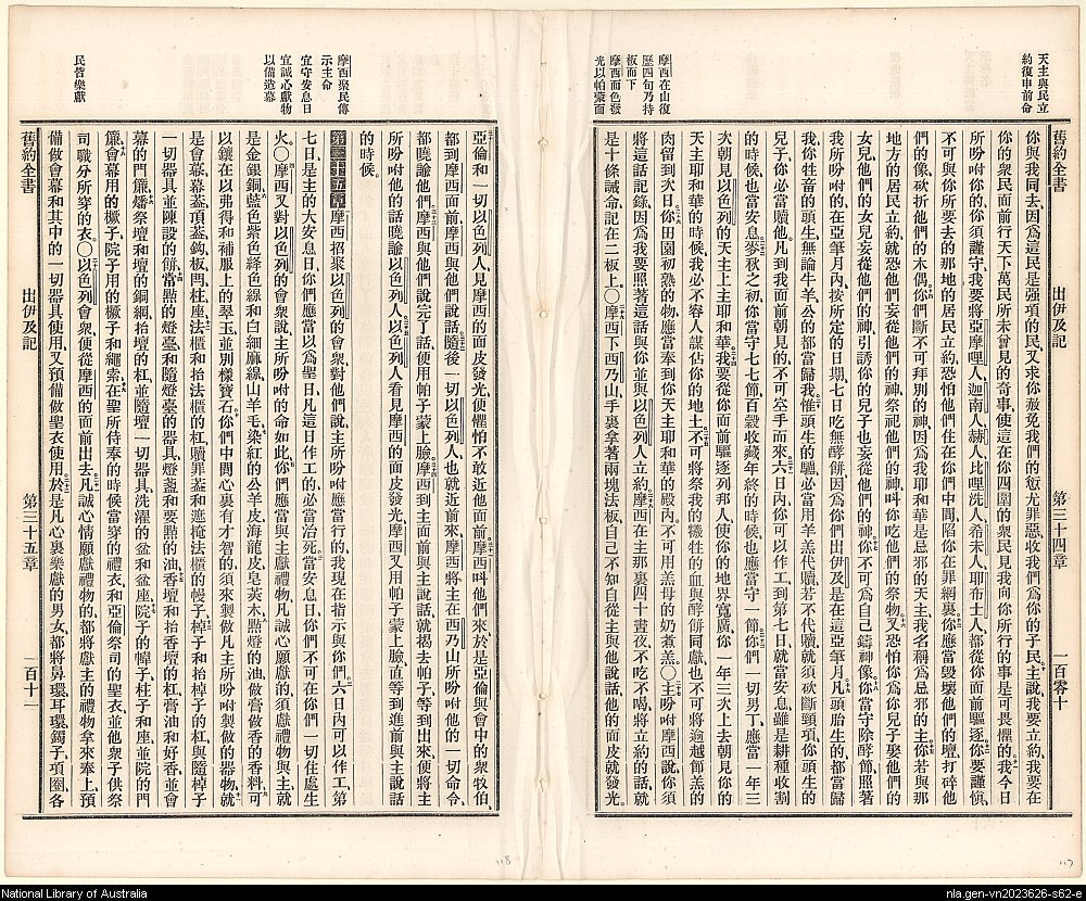 1874年舊約全書 出埃及記 34 章 10 節到 35 章 22 節