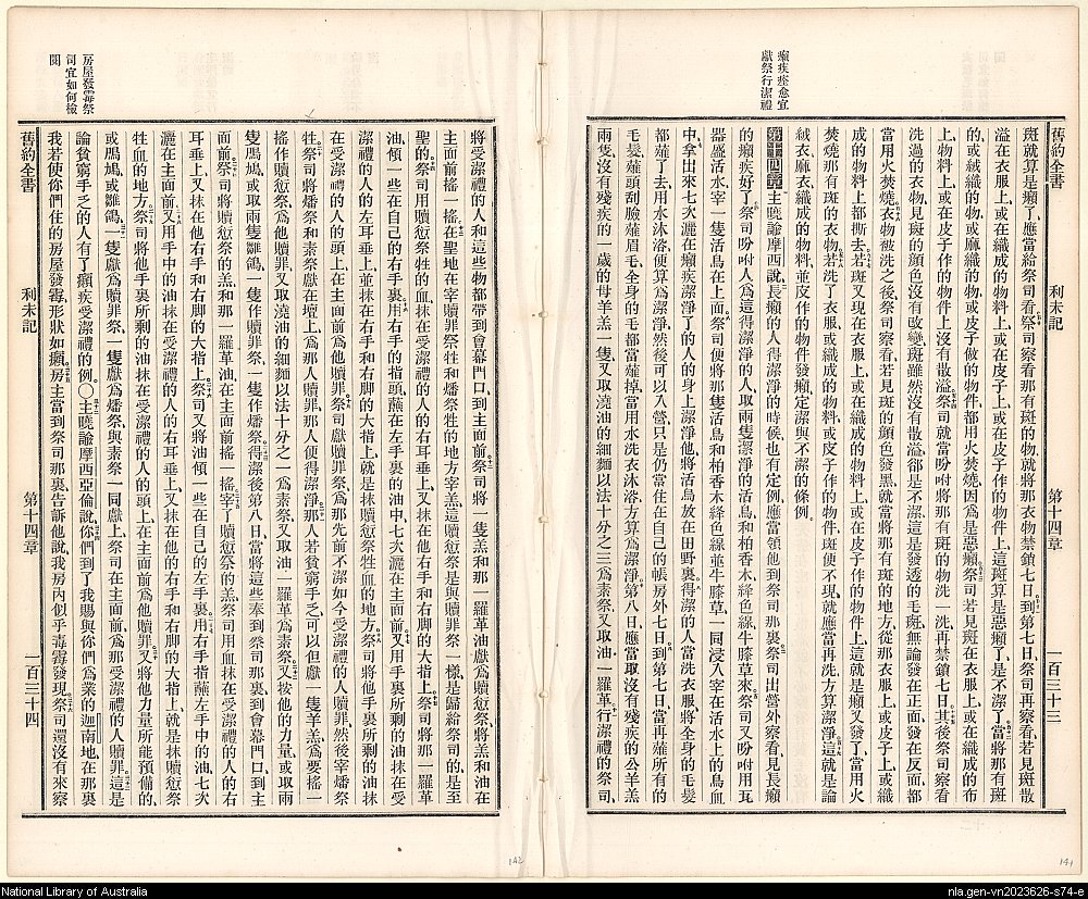 1874年舊約全書 利未記 13 章 50 節到 14 章 36 節