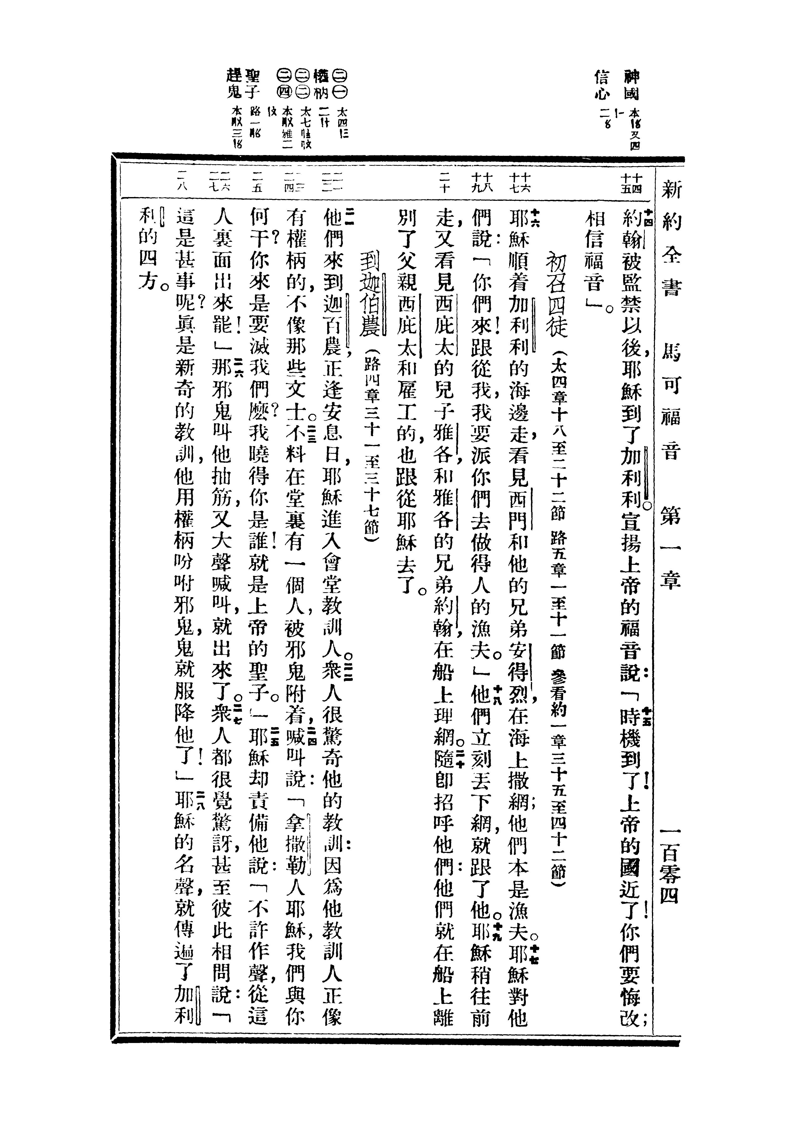 1936年重譯新約全書 馬可福音 1 章 14 節到 1 章 28 節