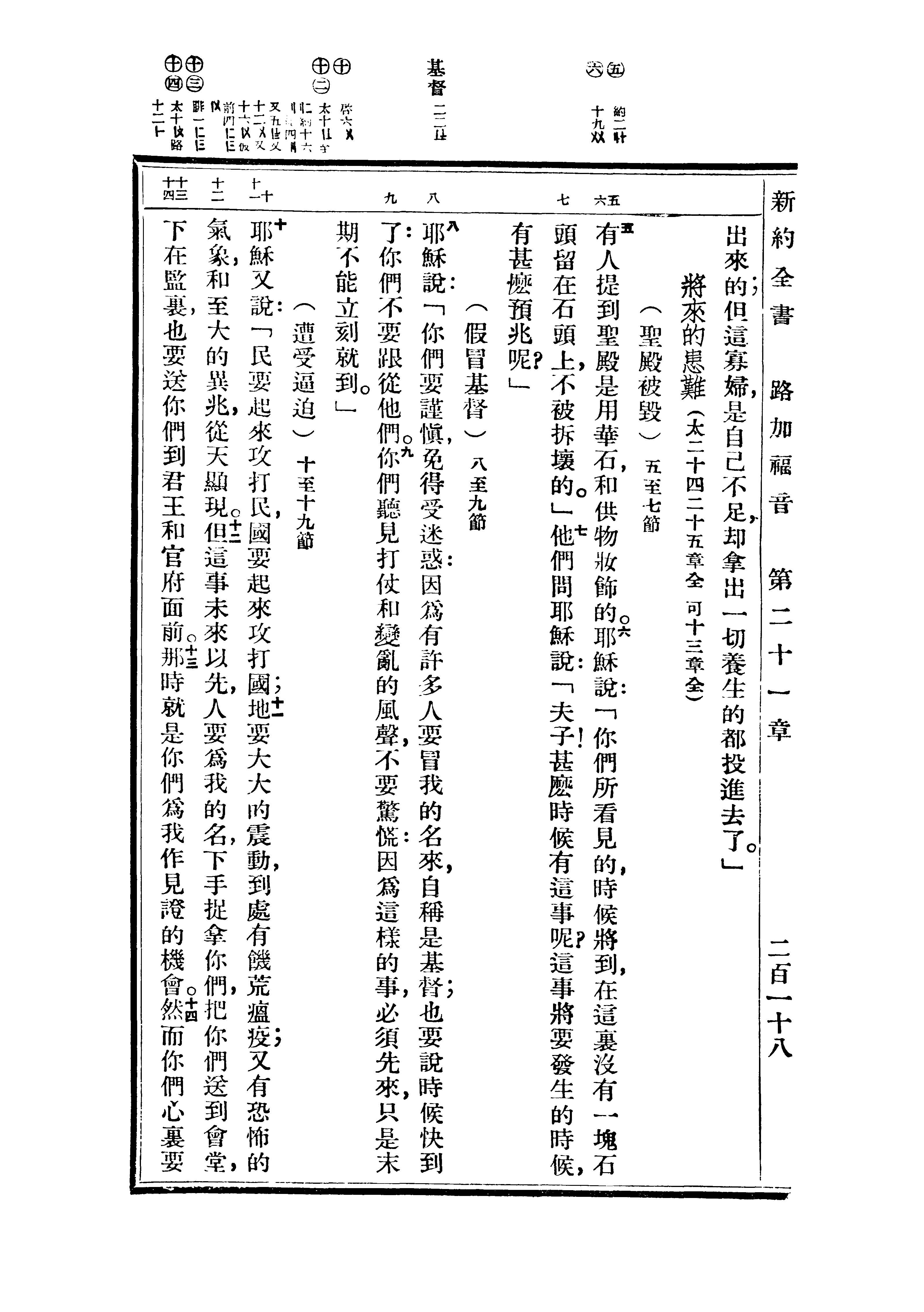 1936年重譯新約全書 路加福音 21 章 5 節到 21 章 14 節