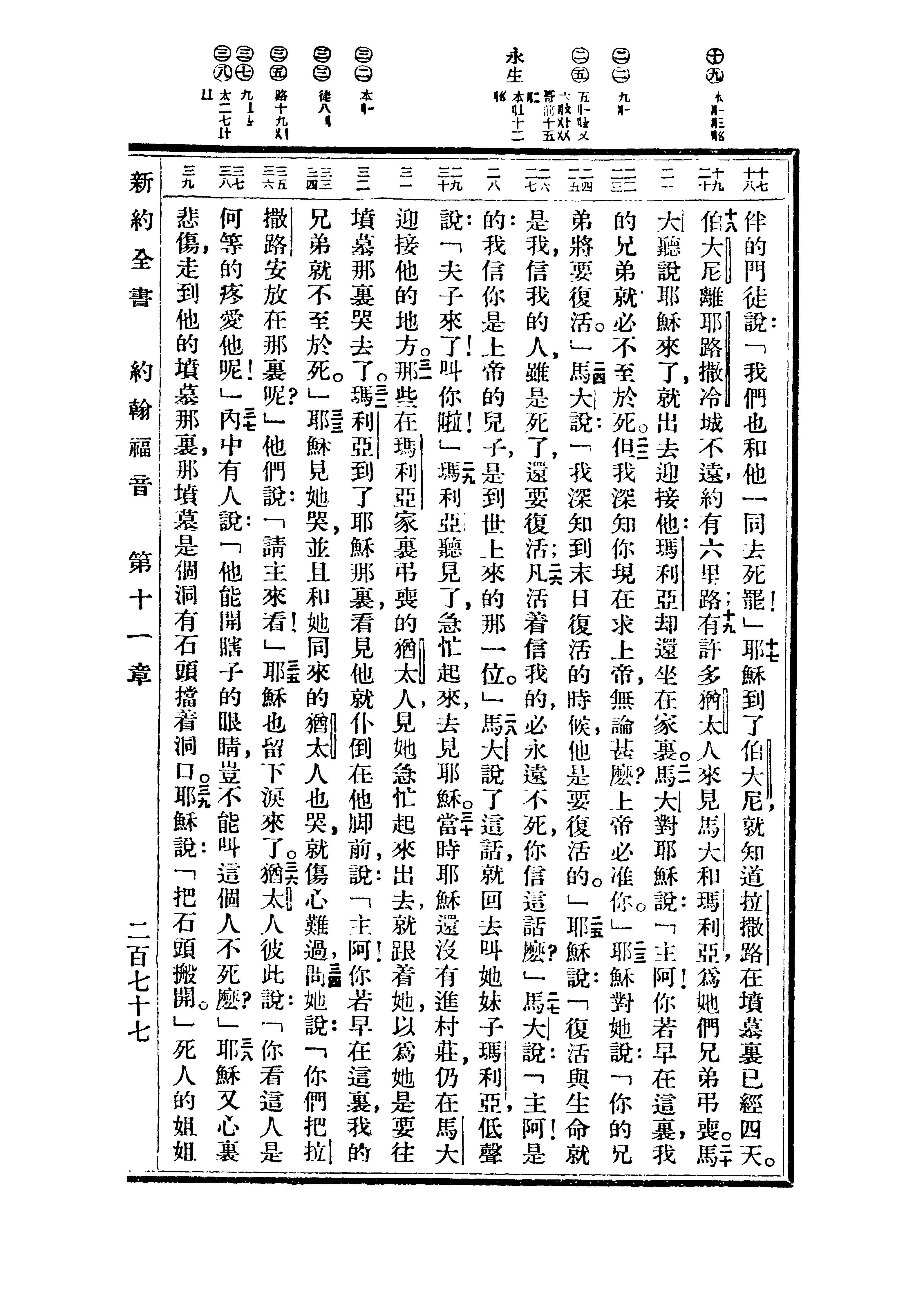 1936年重譯新約全書 約翰福音 11 章 17 節到 11 章 39 節