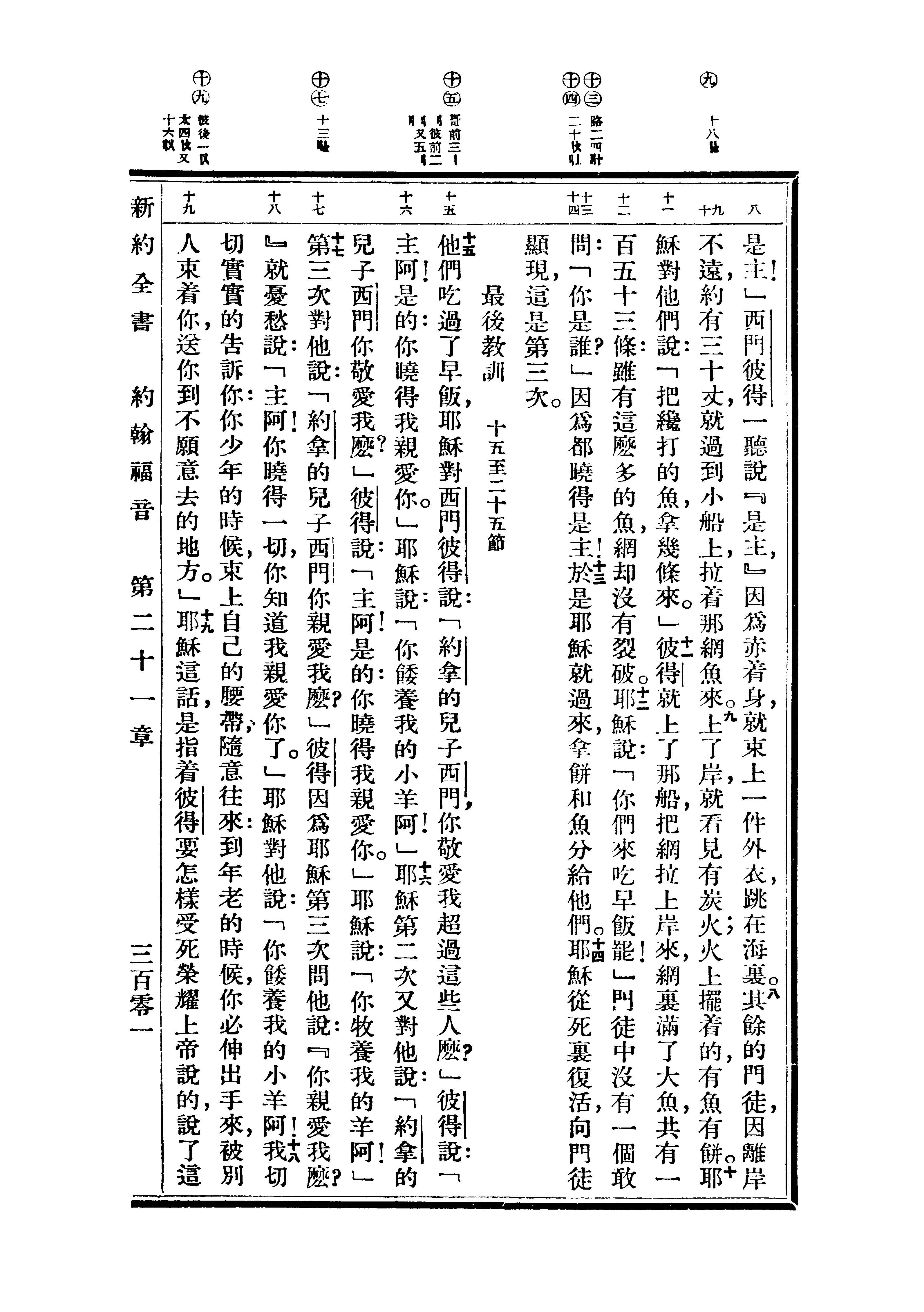 1936年重譯新約全書 約翰福音 21 章 8 節到 21 章 19 節