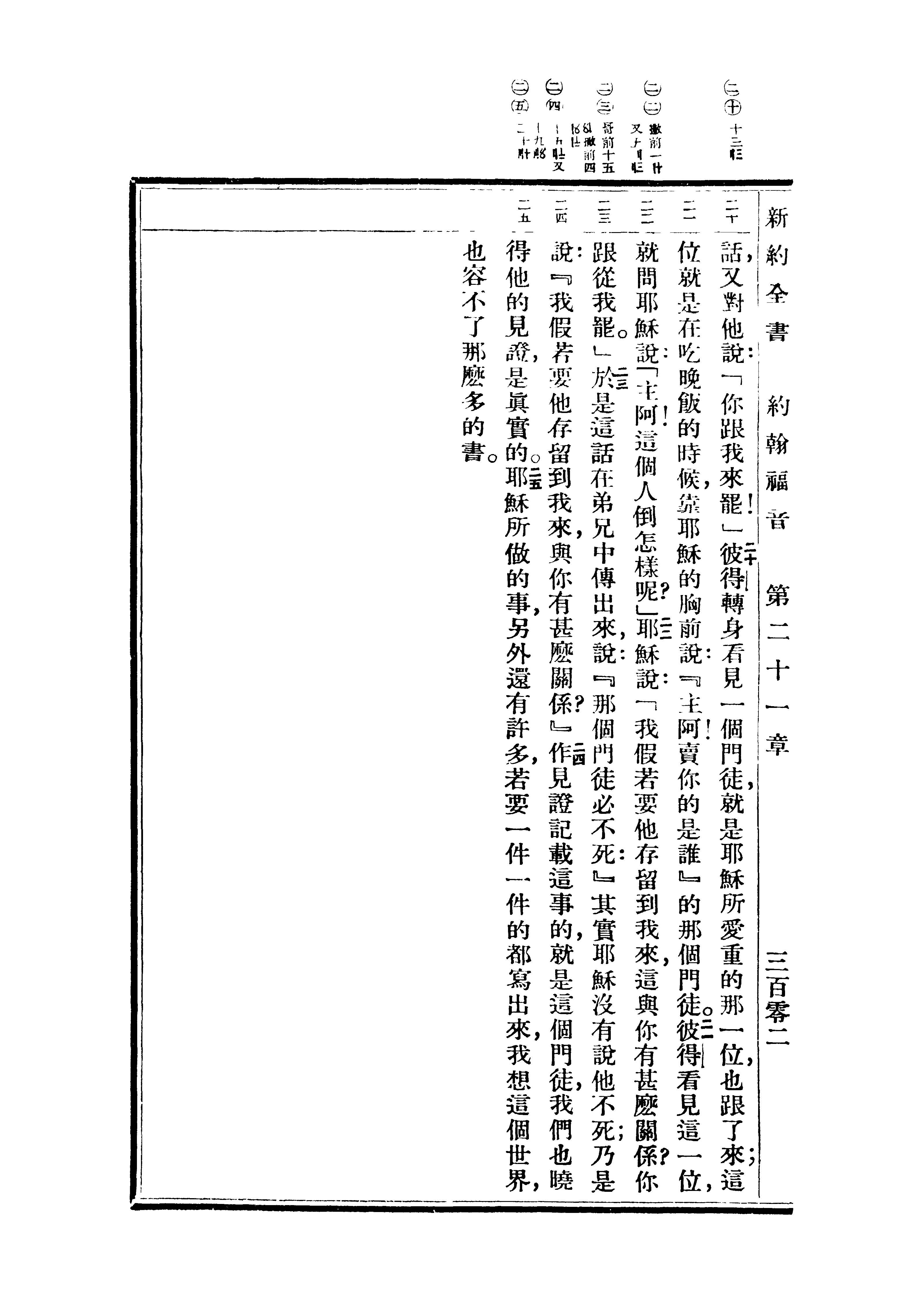 1936年重譯新約全書 約翰福音 21 章 20 節到 21 章 25 節
