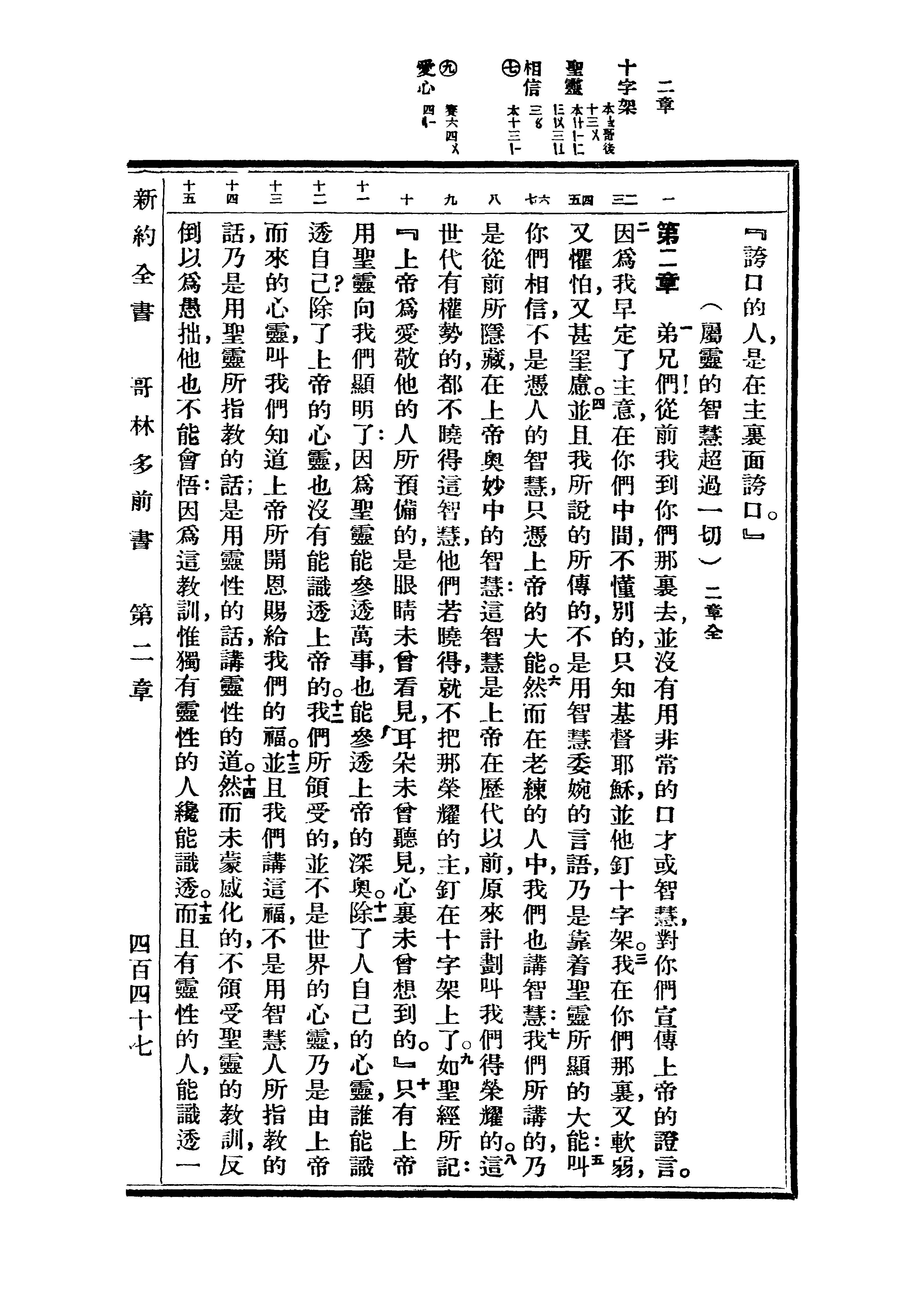 1936年重譯新約全書 哥林多前書 2 章 1 節到 2 章 15 節