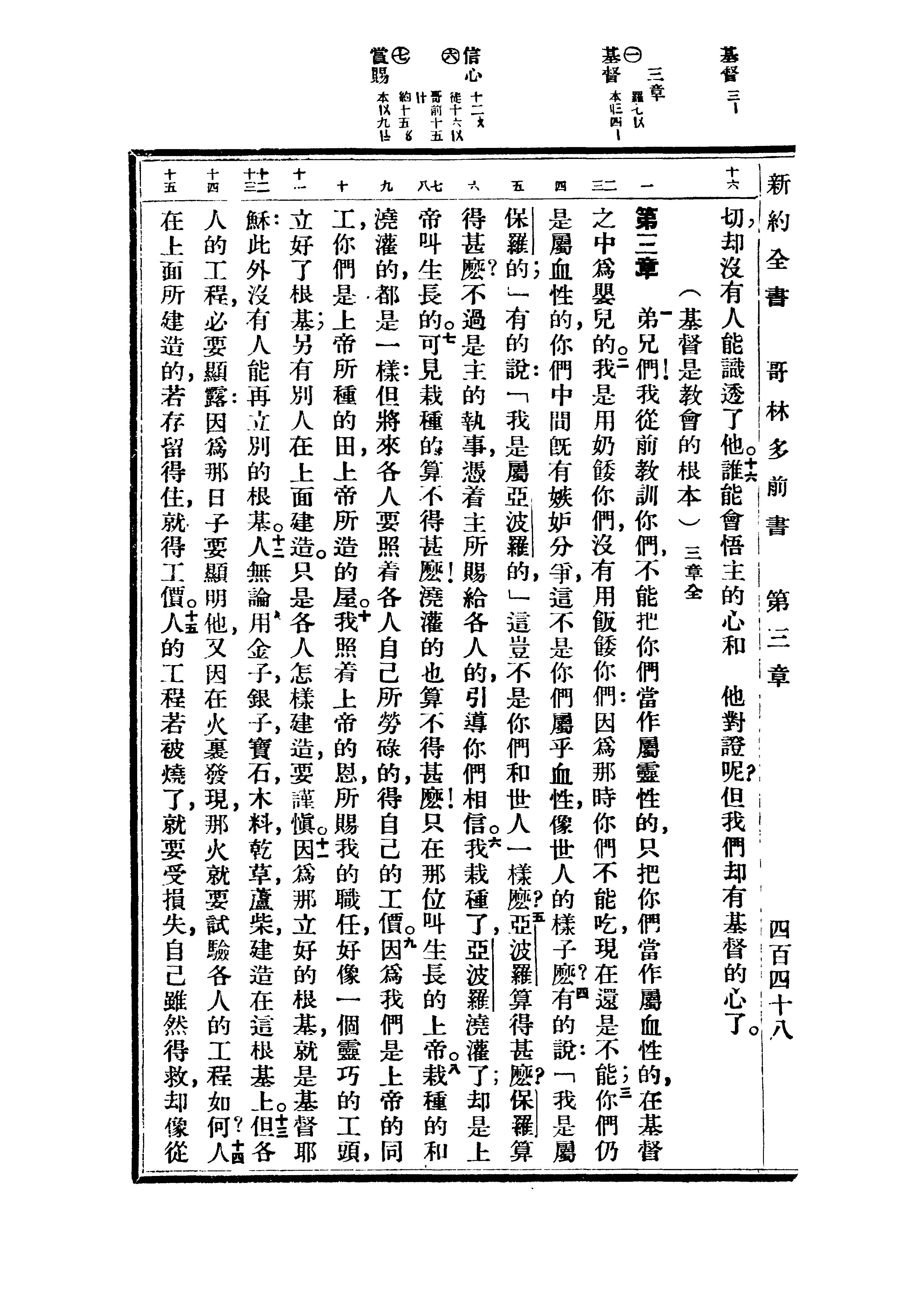1936年重譯新約全書 哥林多前書 2 章 16 節到 3 章 15 節