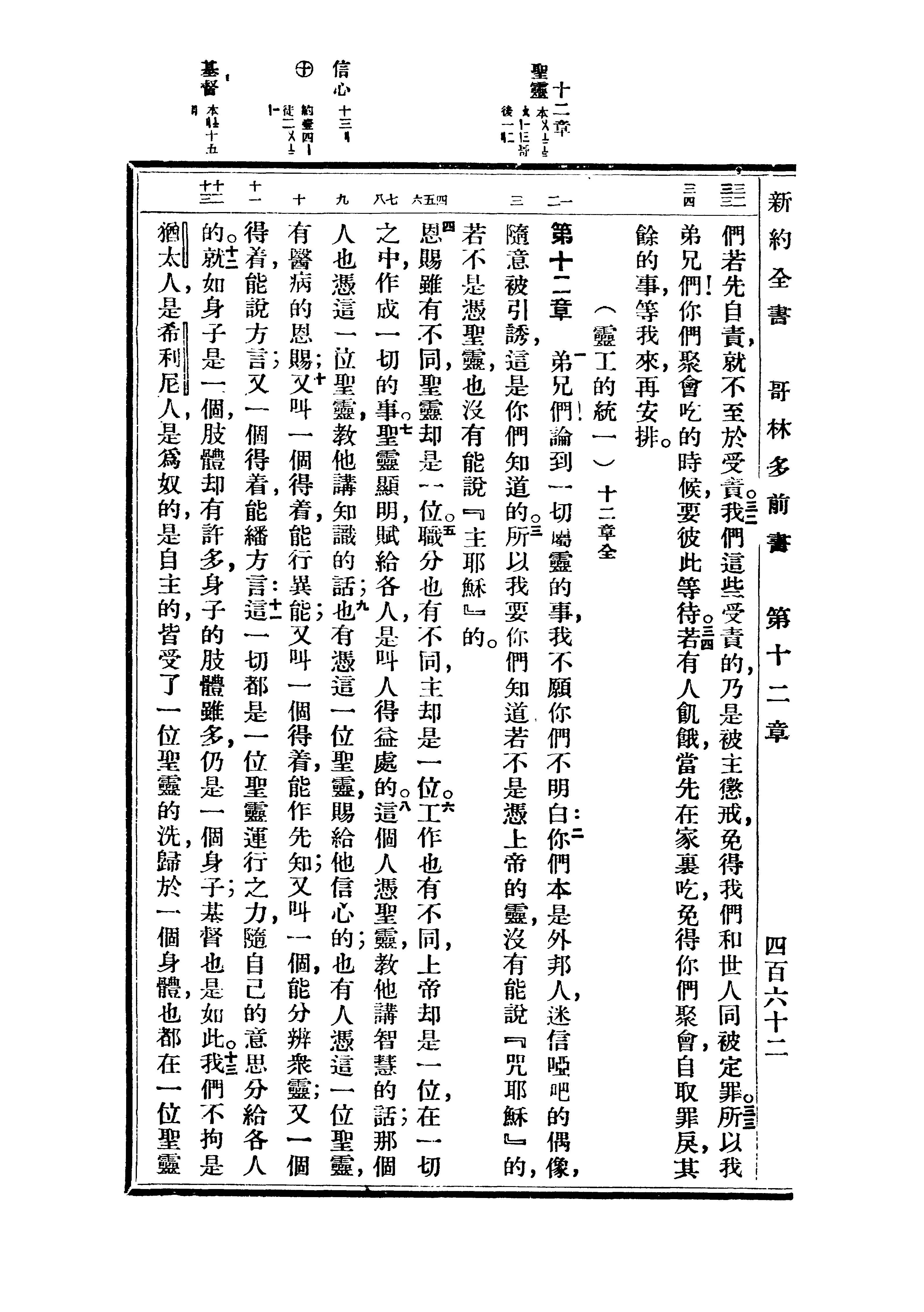 1936年重譯新約全書 哥林多前書 11 章 31 節到 12 章 13 節