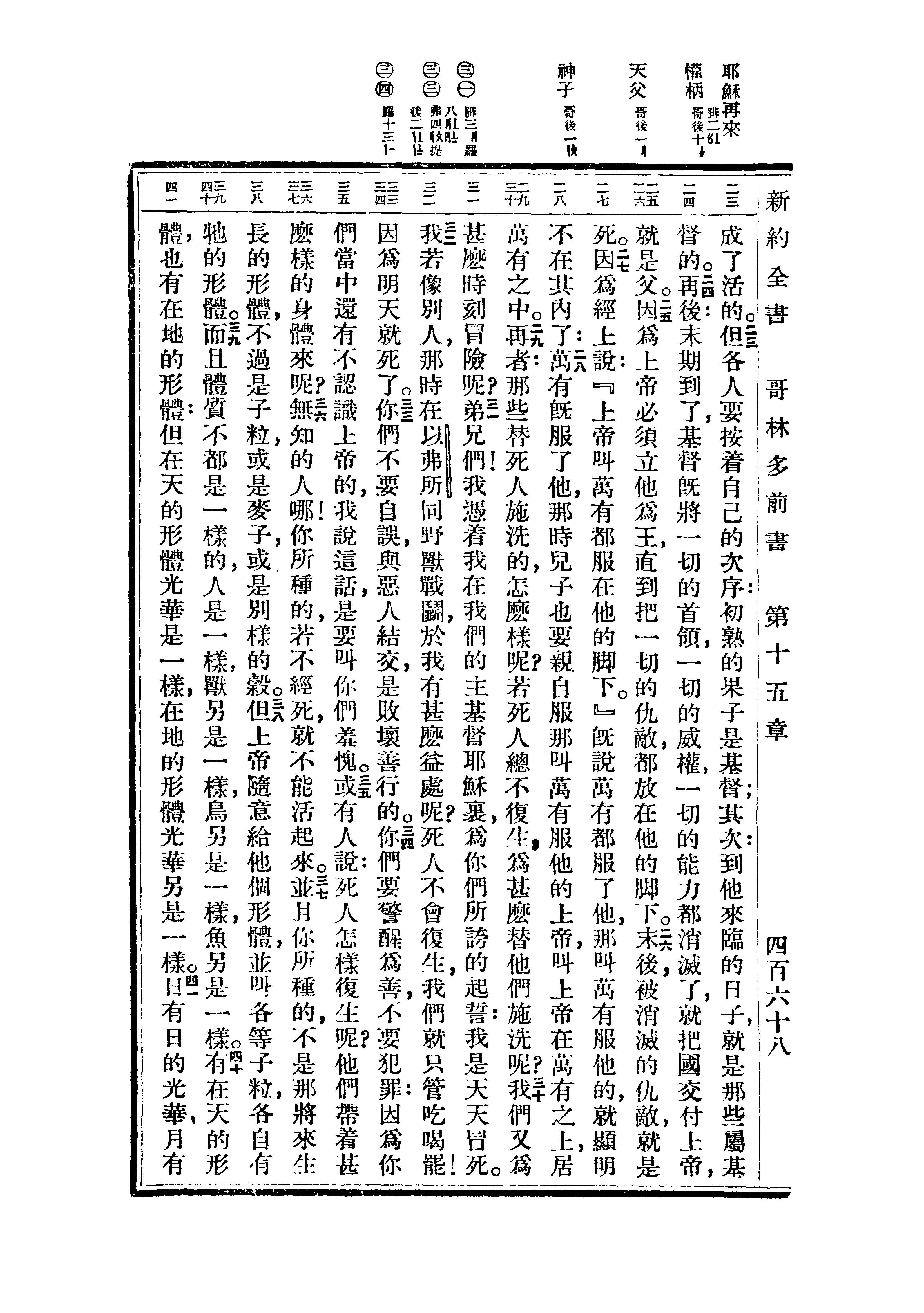 1936年重譯新約全書 哥林多前書 15 章 23 節到 15 章 40 節