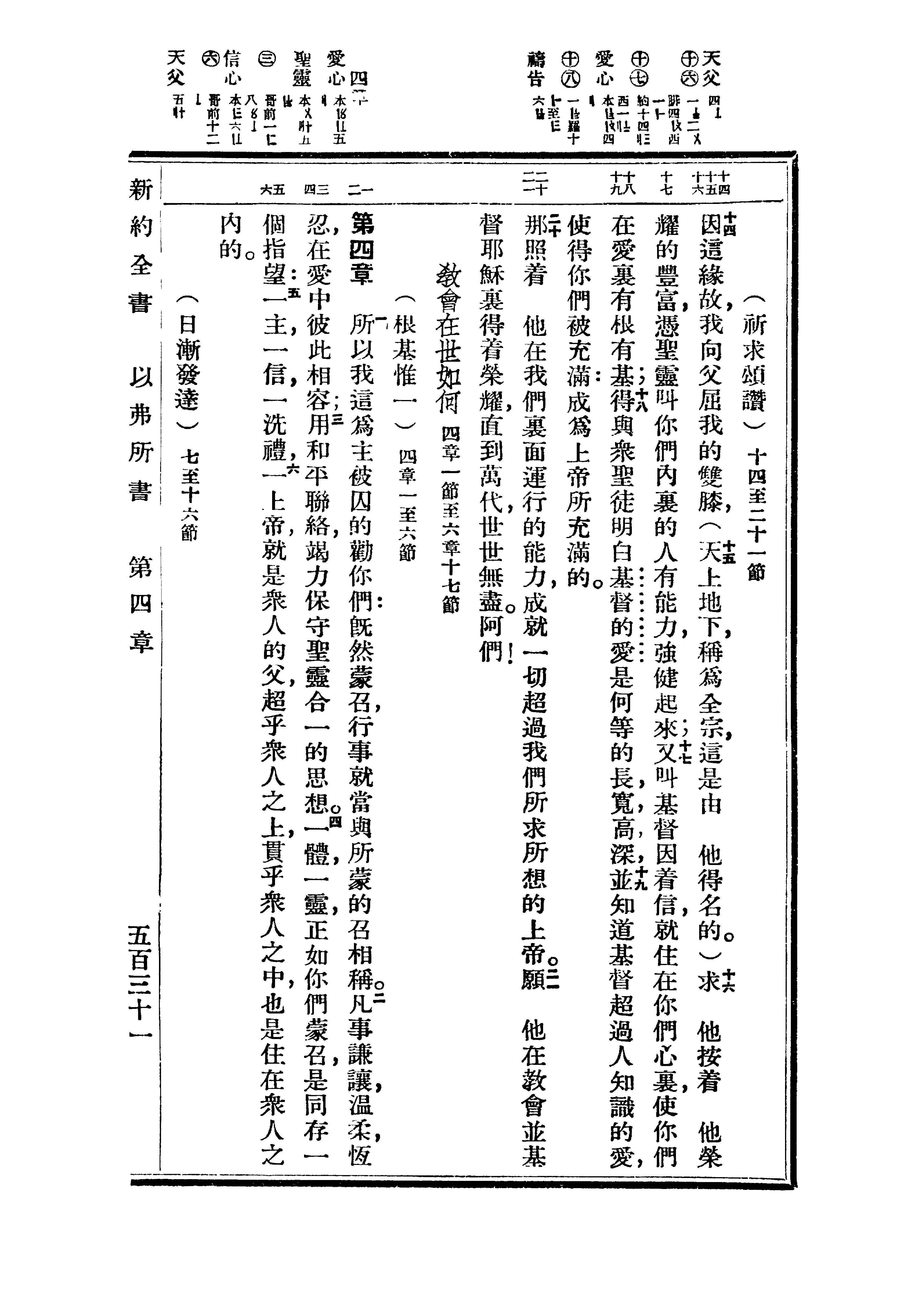 1936年重譯新約全書 以弗所書 3 章 14 節到 4 章 6 節