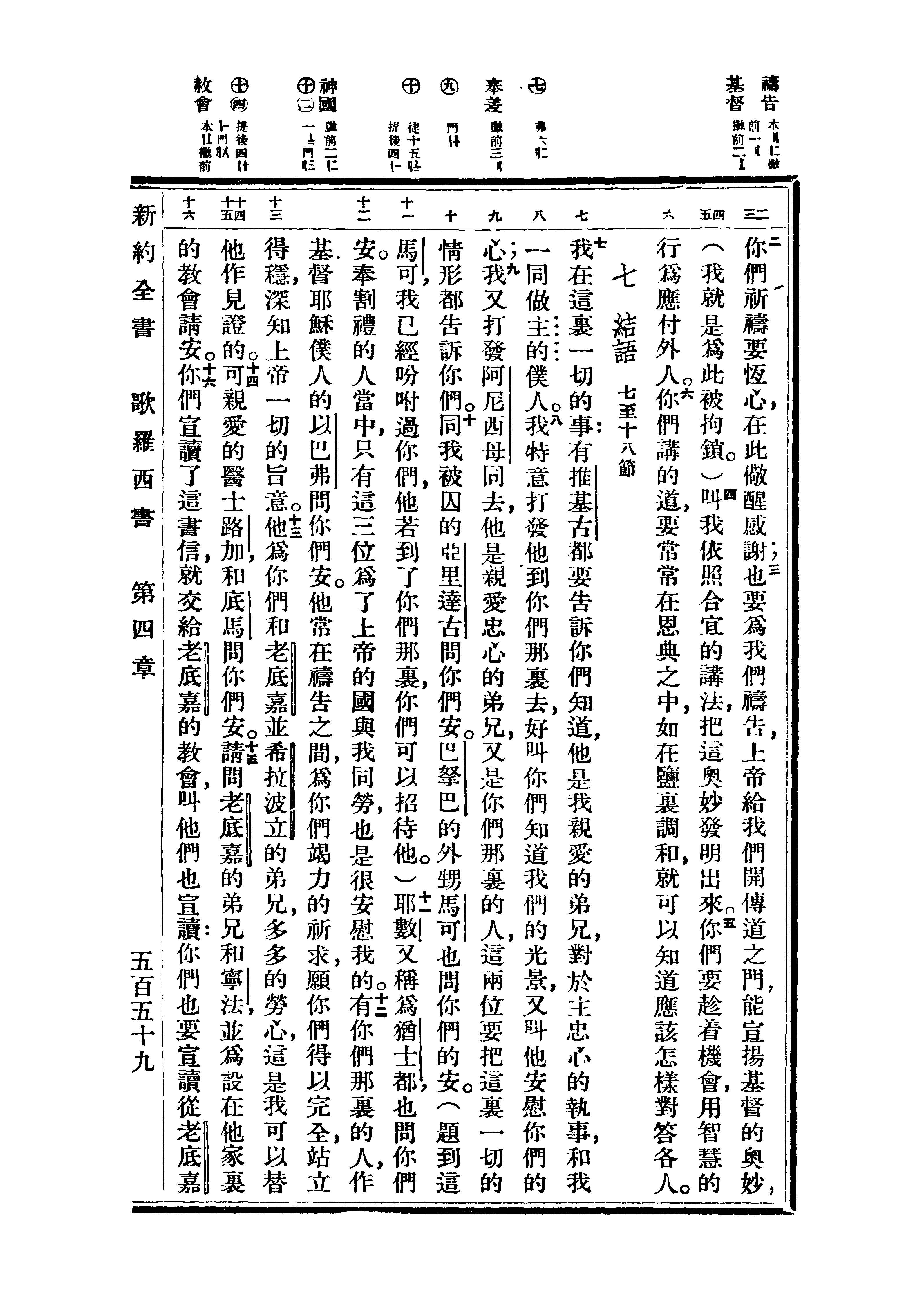 1936年重譯新約全書 歌羅西書 4 章 2 節到 4 章 16 節