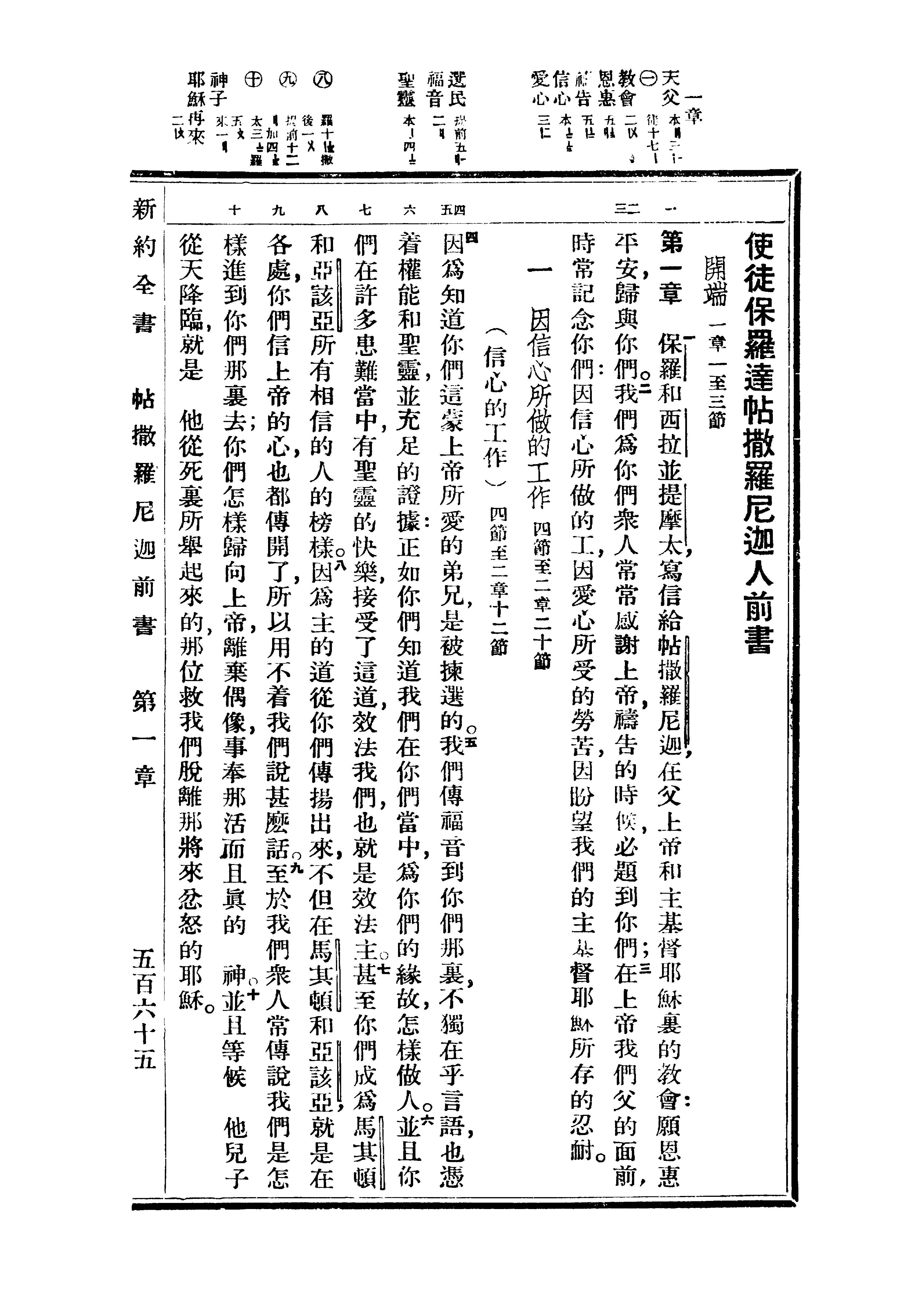 1936年重譯新約全書 帖撒羅尼迦前書 1 章 1 節到 1 章 10 節