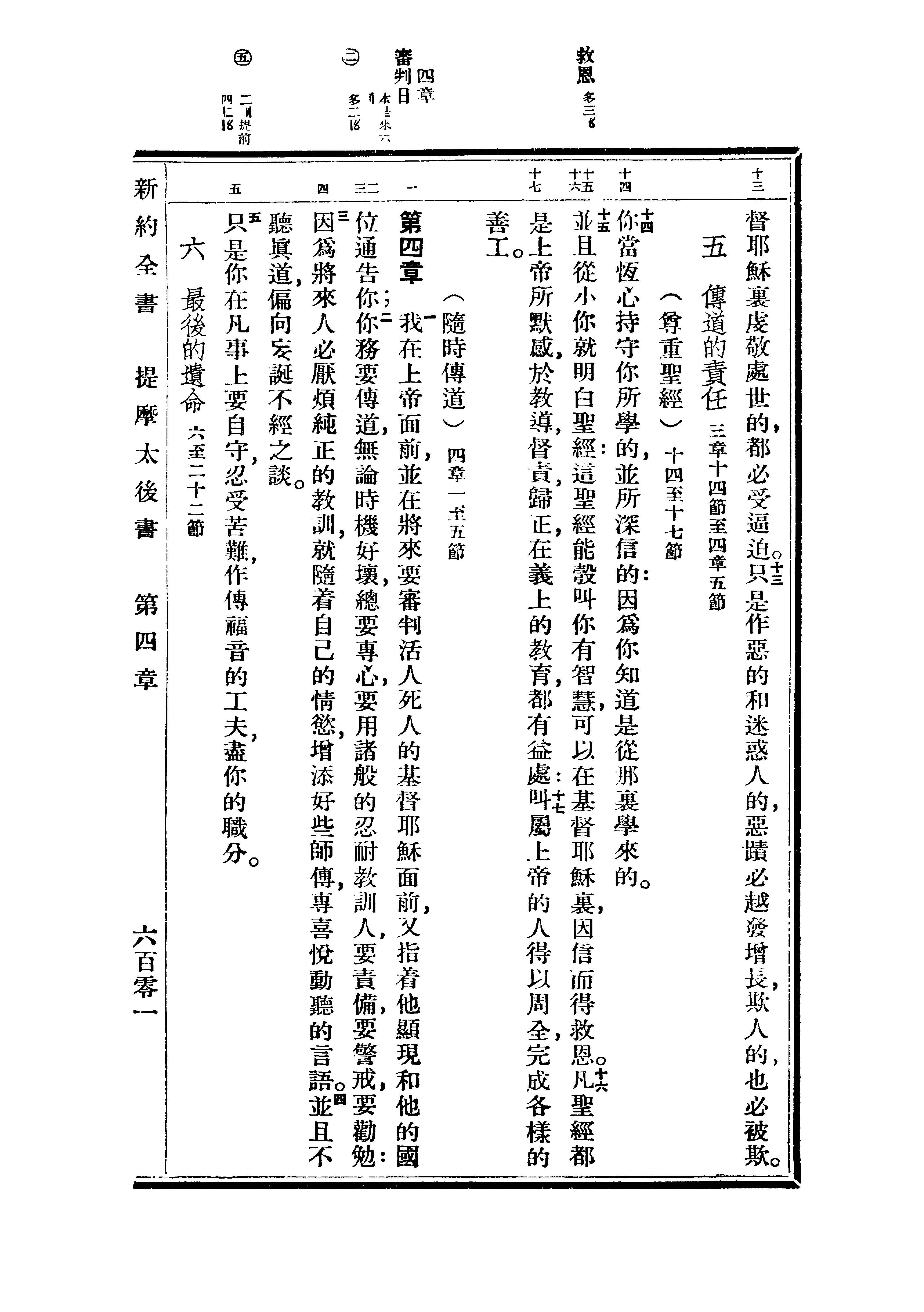 1936年重譯新約全書 提摩太後書 3 章 13 節到 4 章 5 節