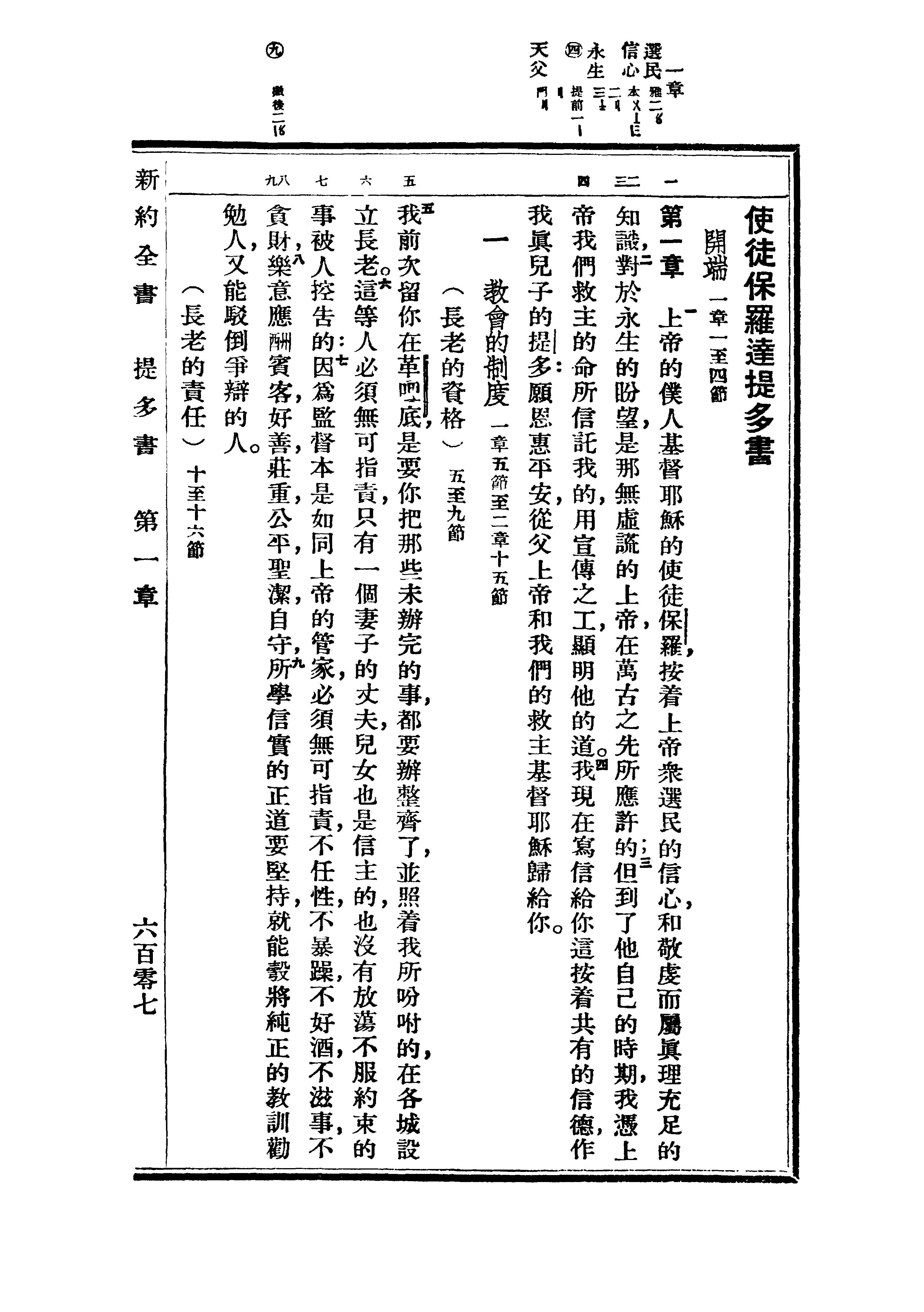 1936年重譯新約全書 提多書 1 章 1 節到 1 章 9 節