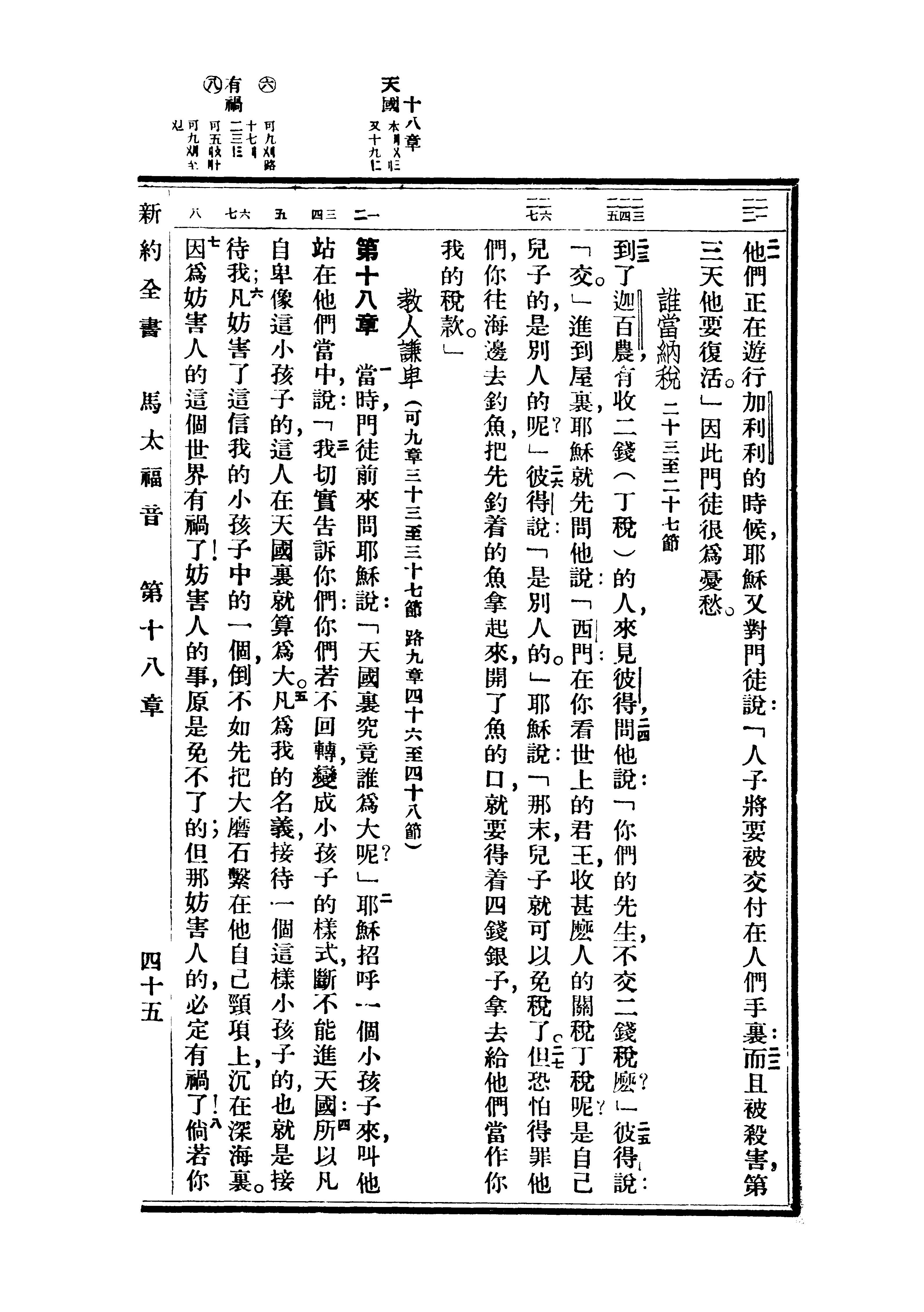 1936年重譯新約全書 馬太福音 17 章 21 節到 18 章 7 節