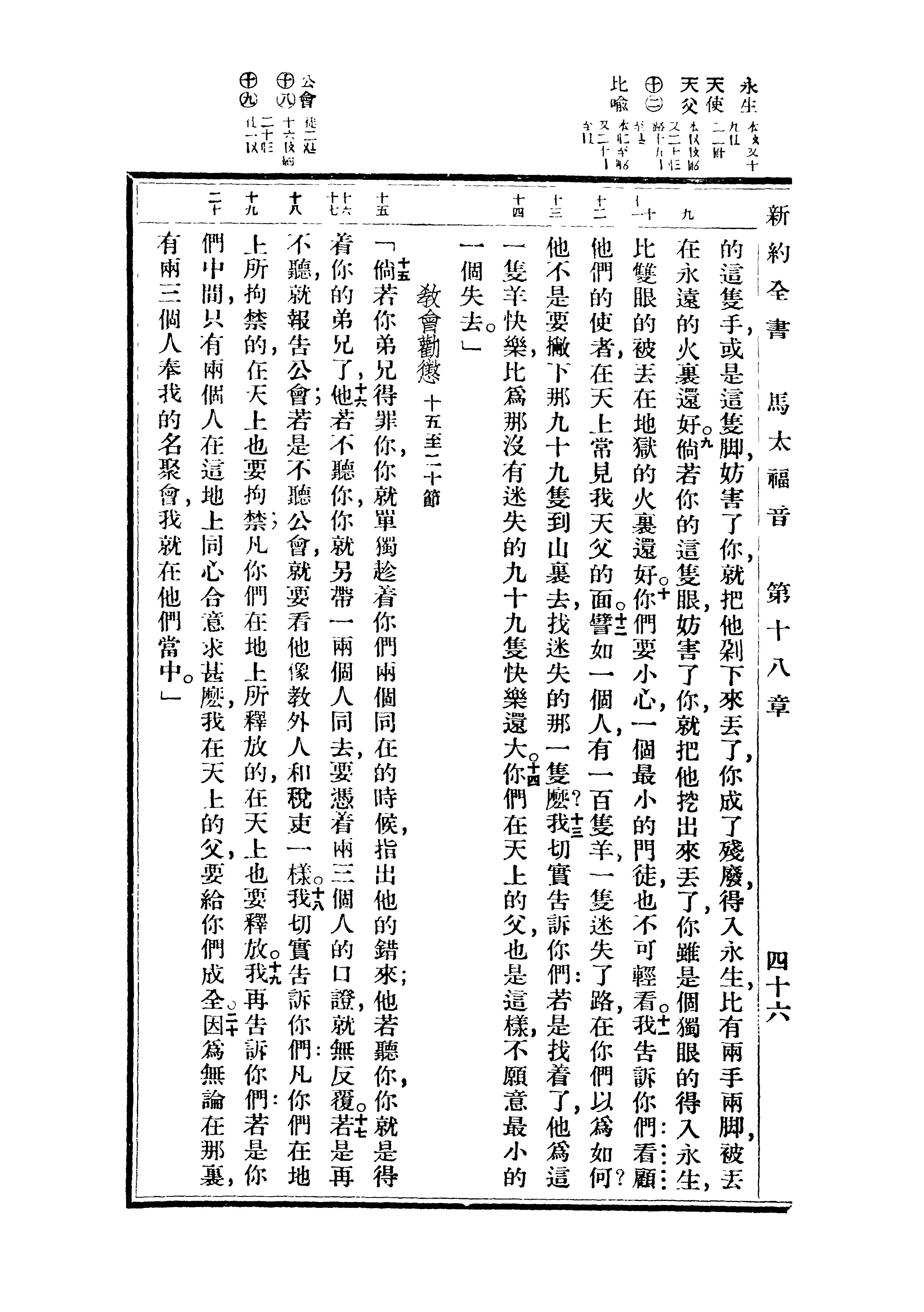 1936年重譯新約全書 馬太福音 18 章 8 節到 18 章 20 節