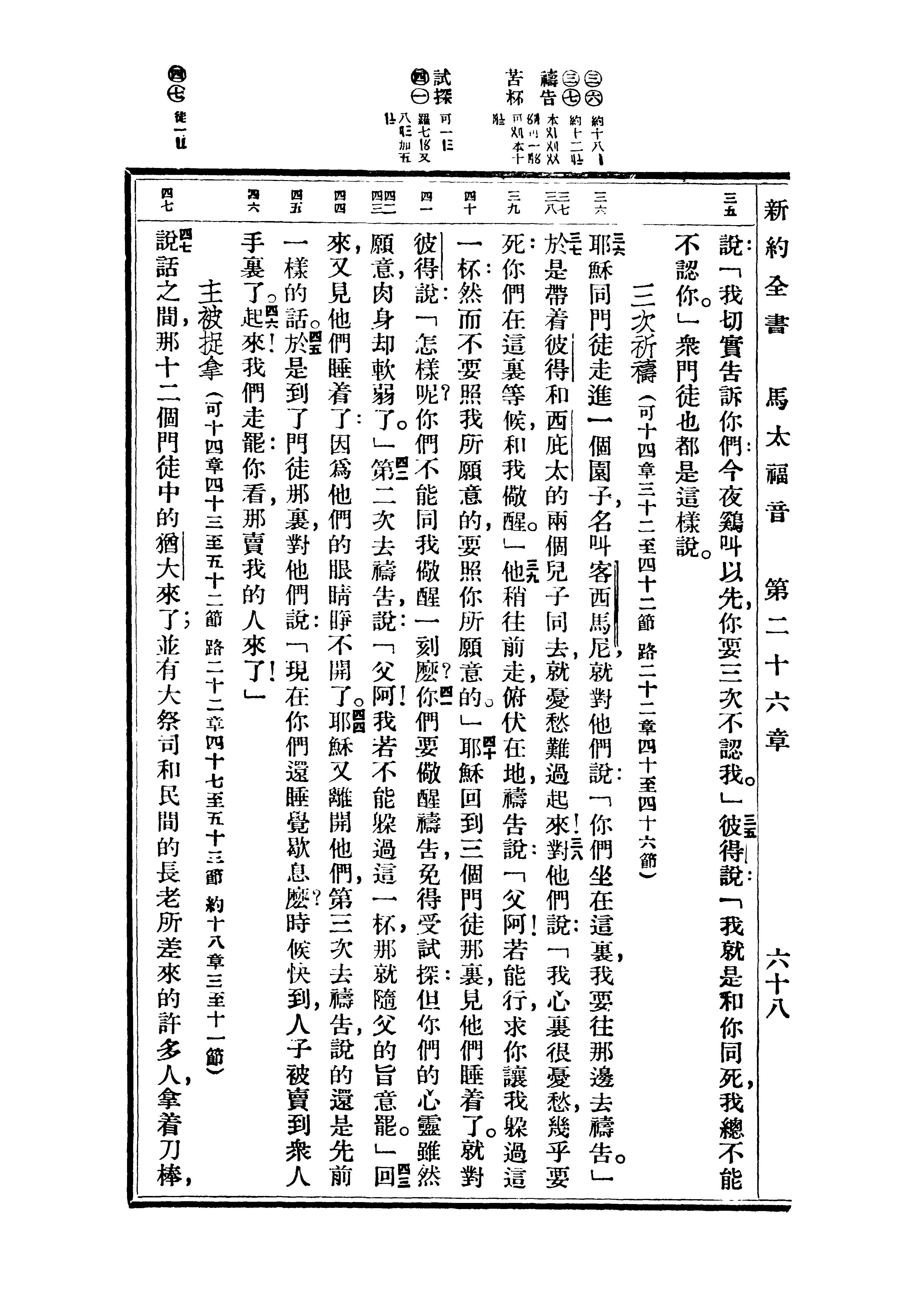 1936年重譯新約全書 馬太福音 26 章 34 節到 26 章 47 節