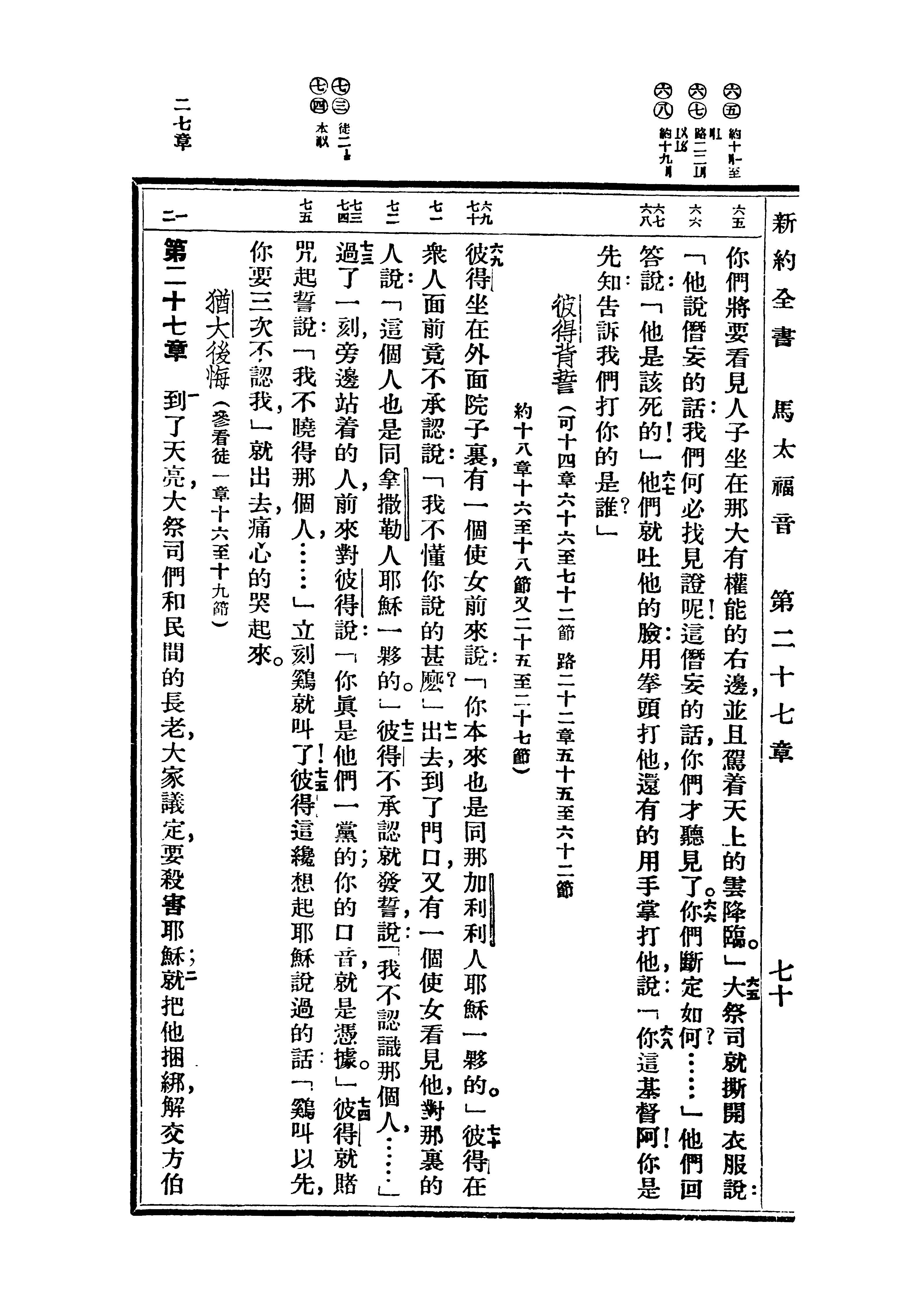 1936年重譯新約全書 馬太福音 26 章 65 節到 27 章 2 節