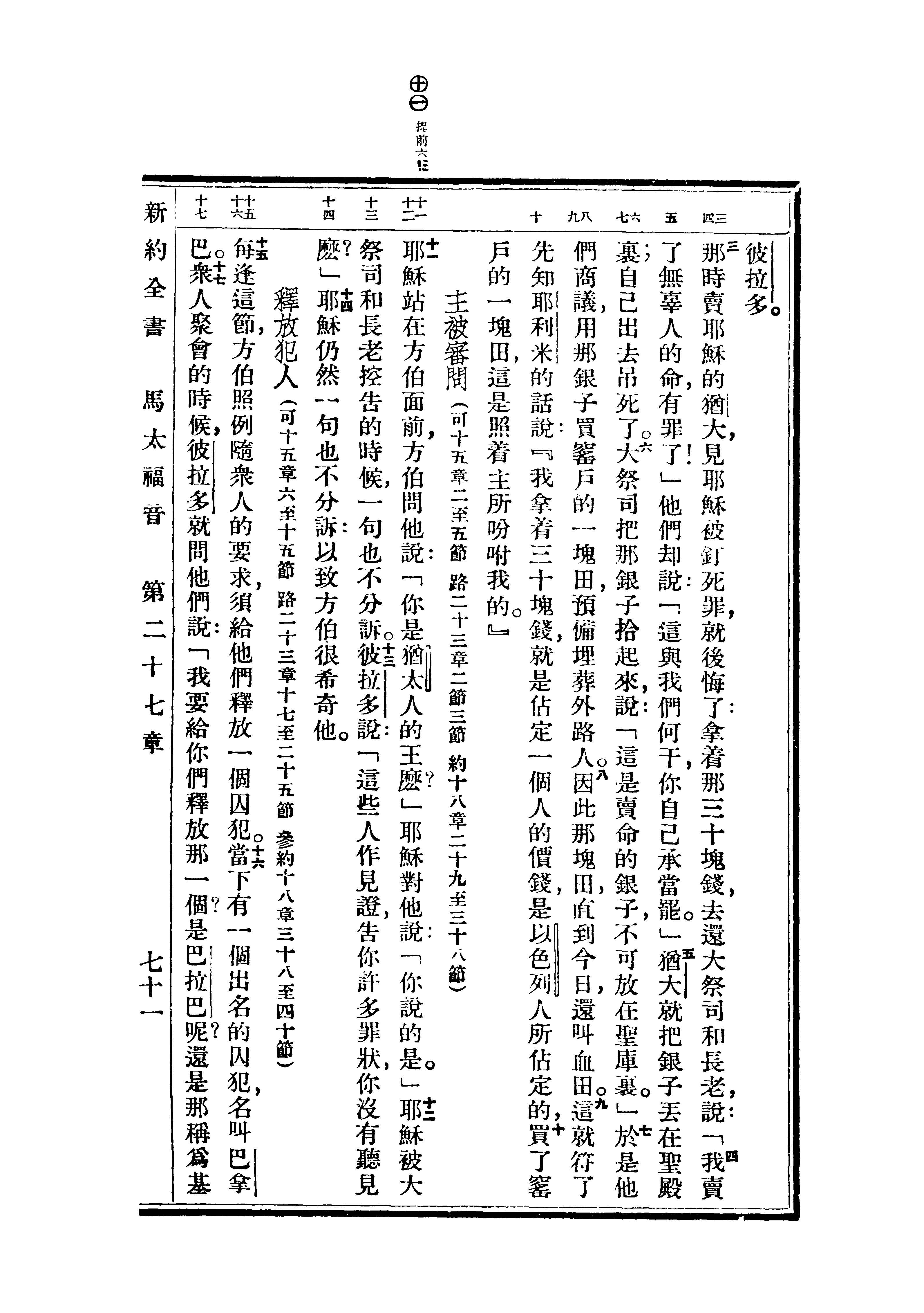 1936年重譯新約全書 馬太福音 27 章 3 節到 27 章 17 節