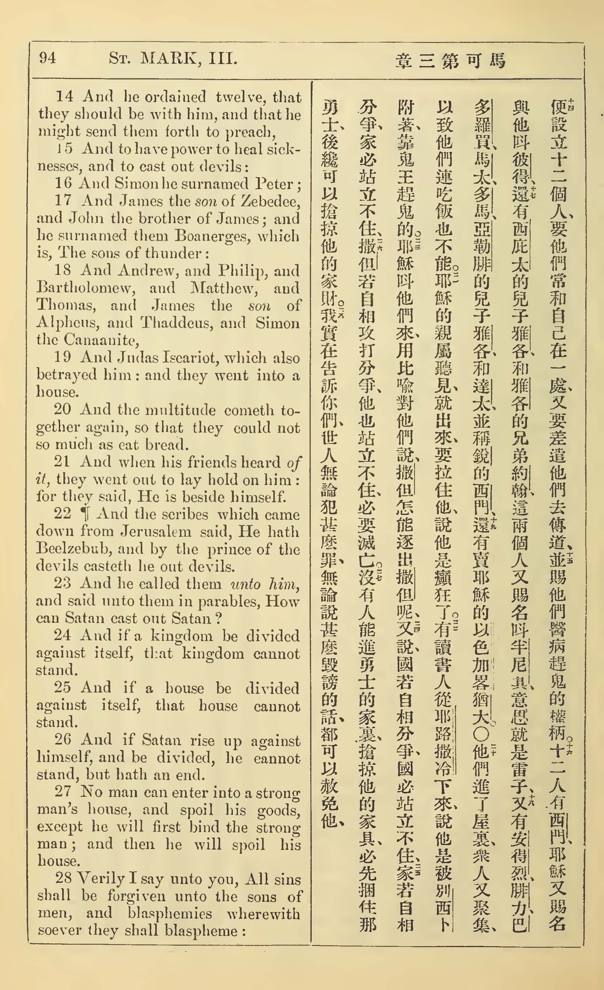 1902年新約全書(中英對照) 馬可福音 3 章 14 節到 3 章 28 節