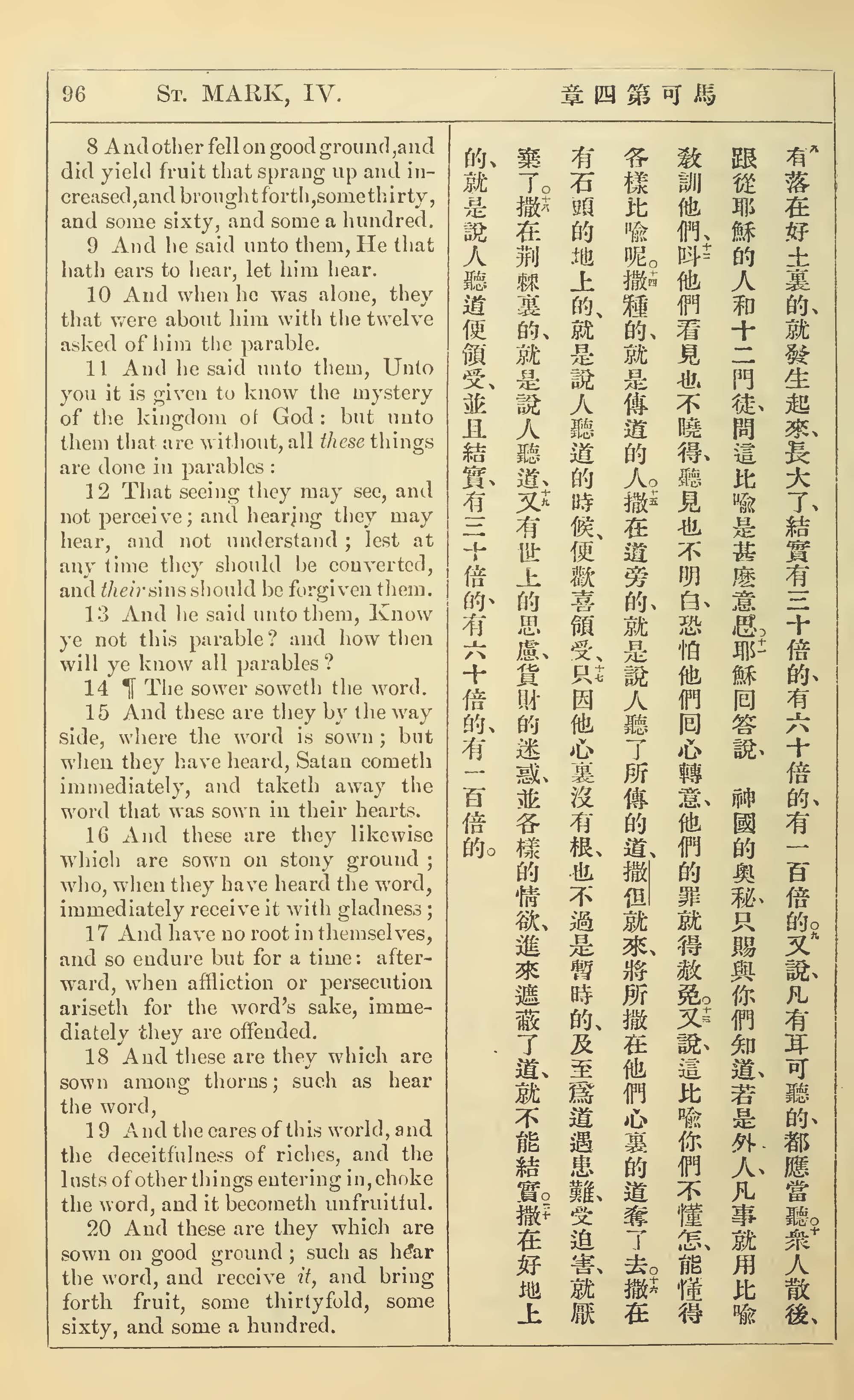 1902年新約全書(中英對照) 馬可福音 4 章 8 節到 4 章 20 節