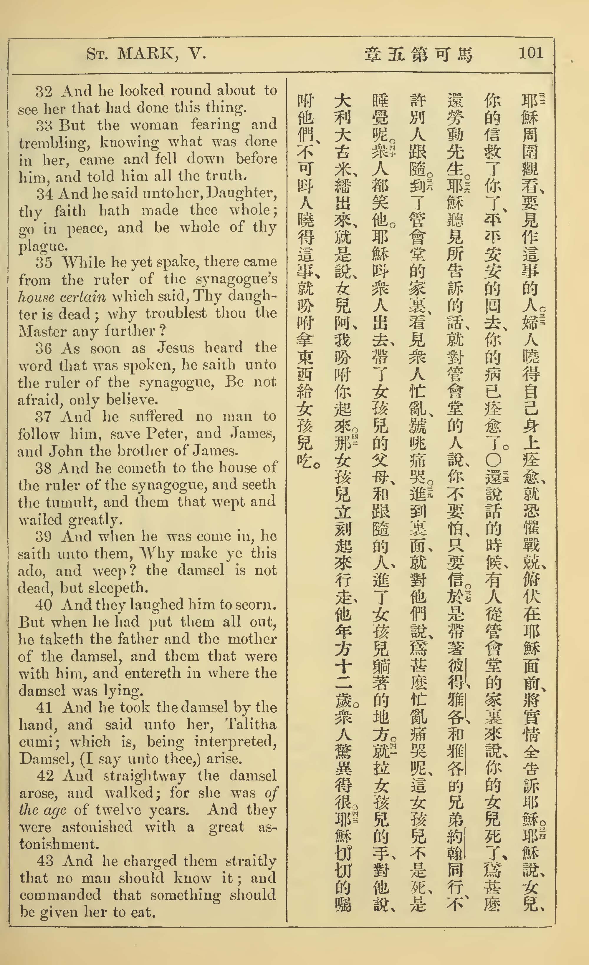 1902年新約全書(中英對照) 馬可福音 5 章 32 節到 5 章 43 節