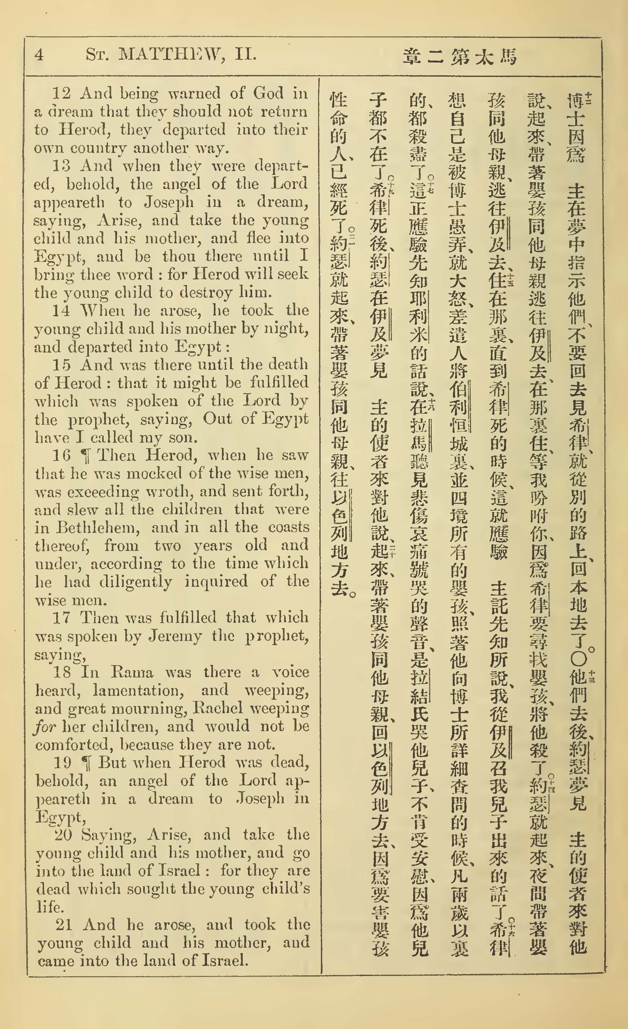 1902年新約全書(中英對照) 馬太福音 2 章 12 節到 2 章 21 節