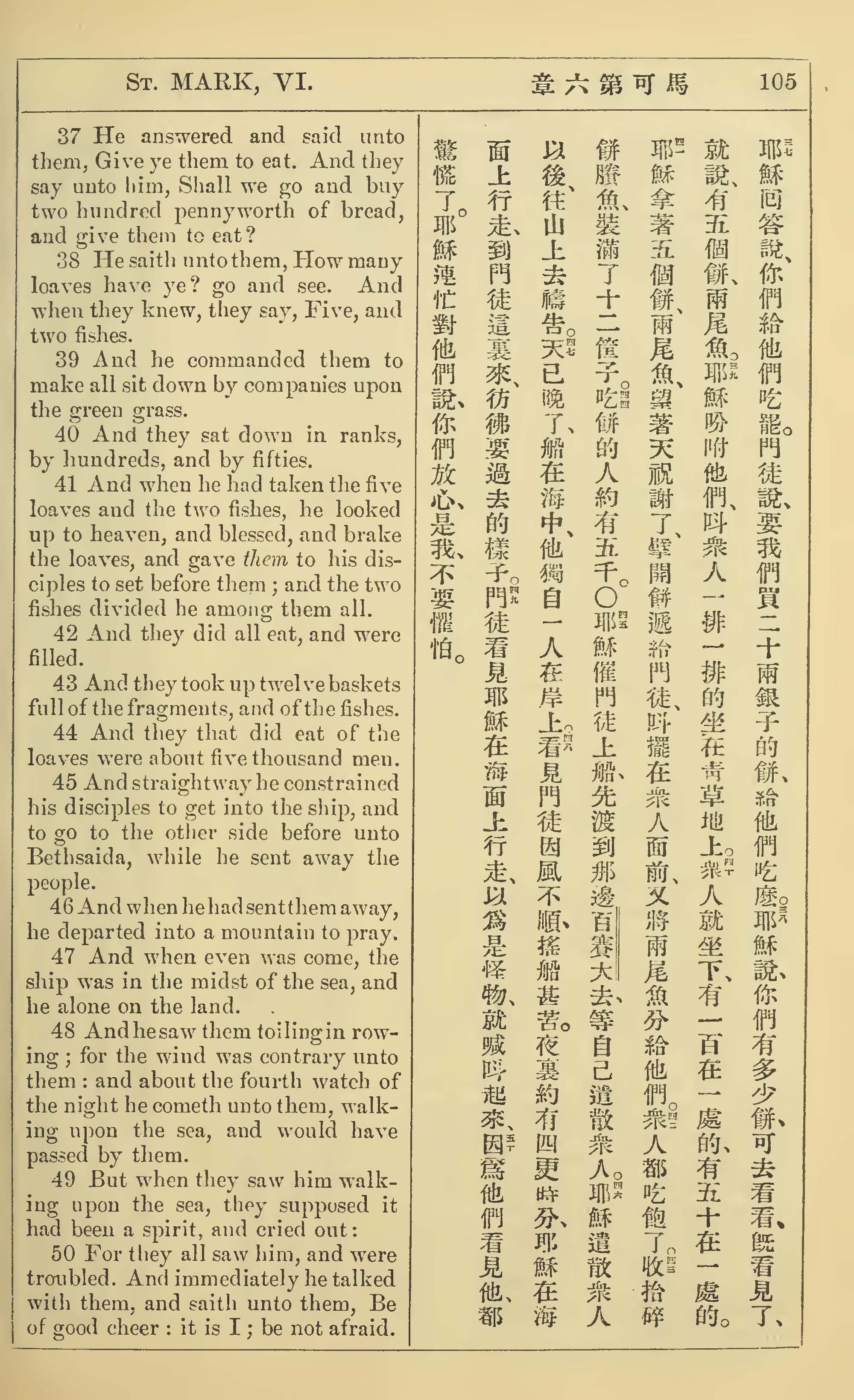 1902年新約全書(中英對照) 馬可福音 6 章 37 節到 6 章 50 節