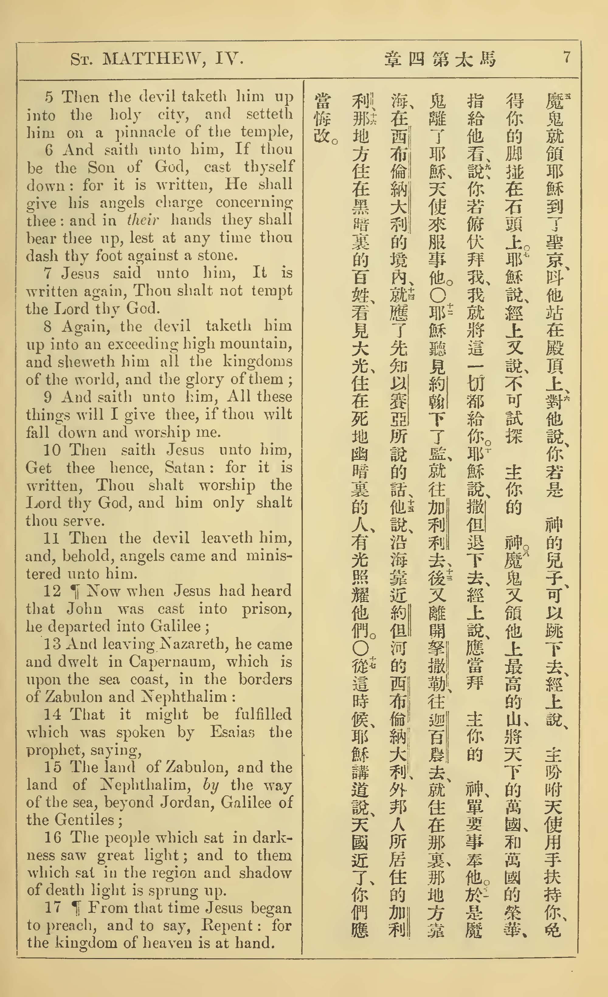 1902年新約全書(中英對照) 馬太福音 4 章 5 節到 4 章 17 節