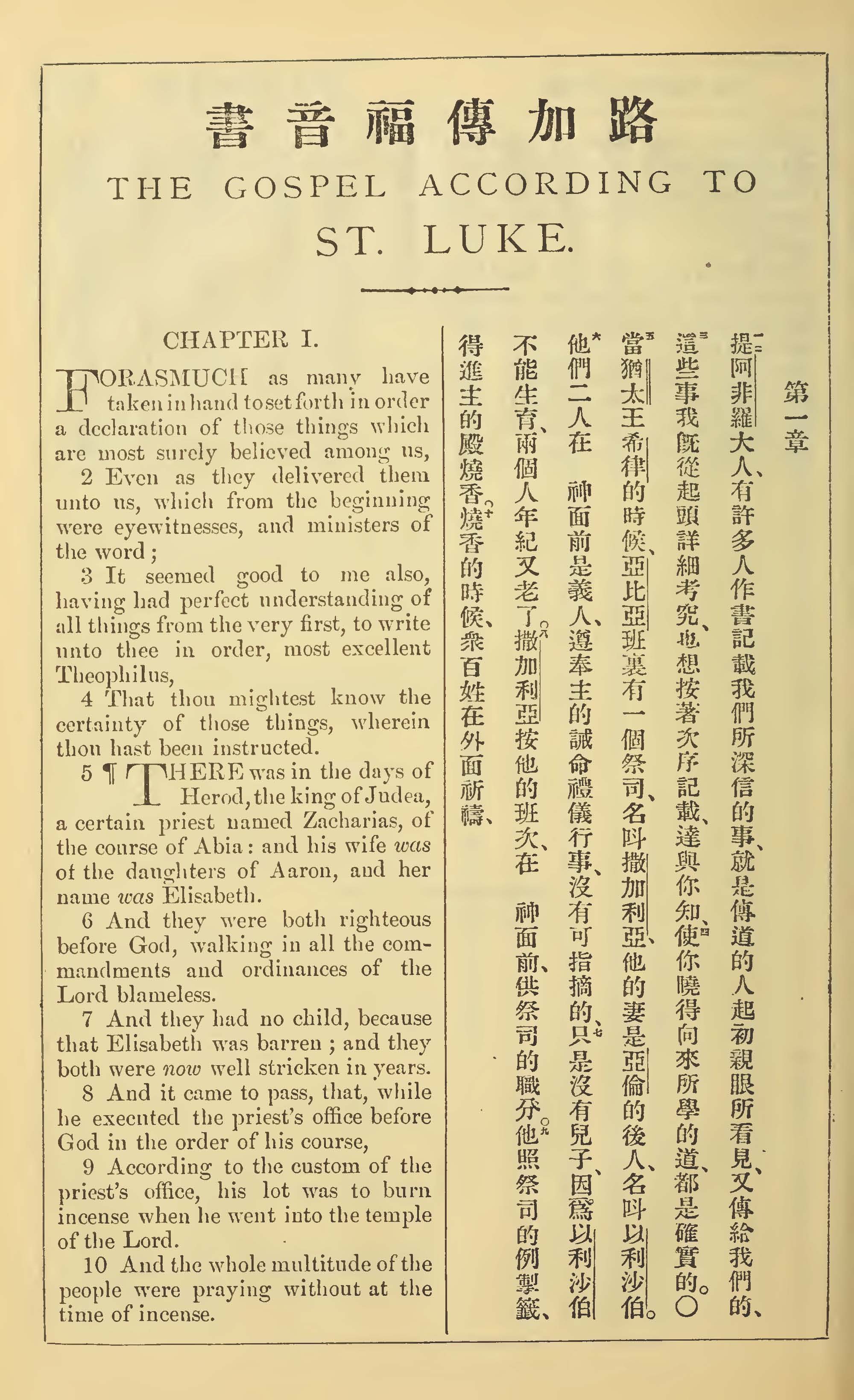 1902年新約全書(中英對照) 路加福音 1 章 1 節到 1 章 10 節