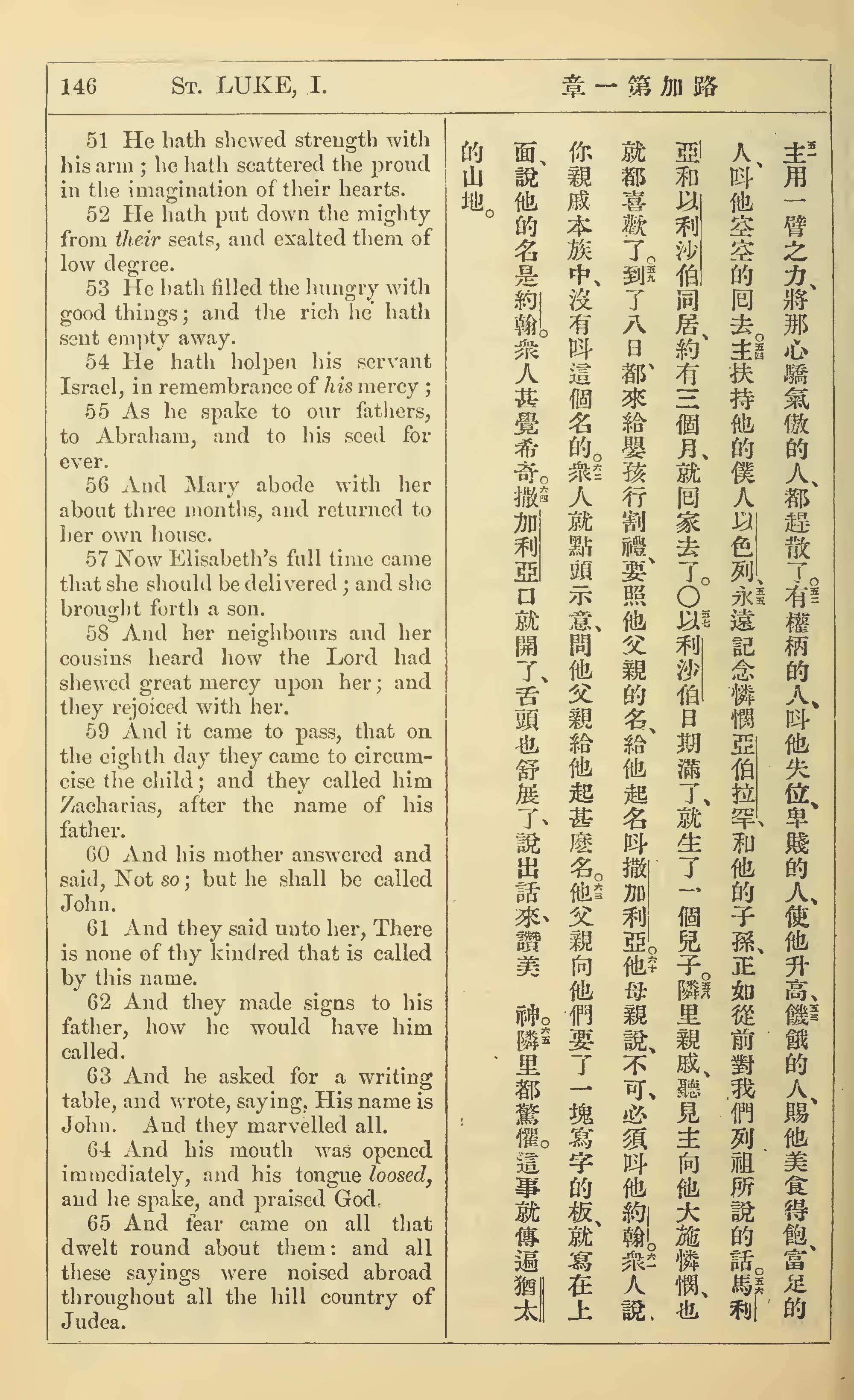 1902年新約全書(中英對照) 路加福音 1 章 51 節到 1 章 65 節