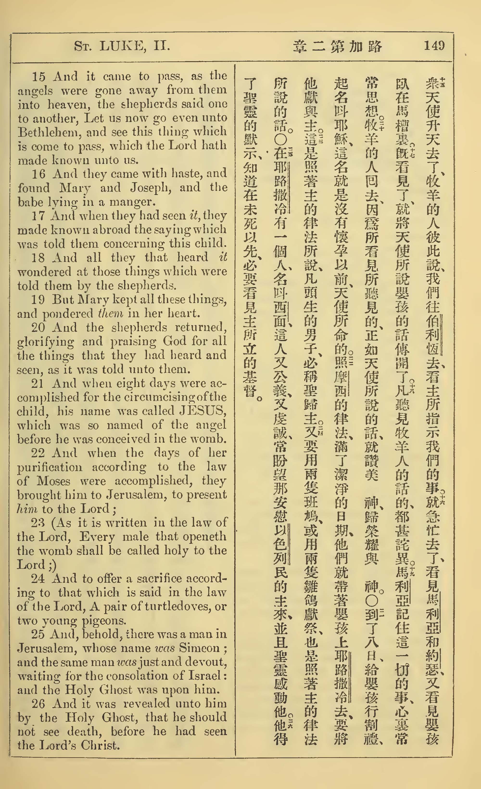 1902年新約全書(中英對照) 路加福音 2 章 15 節到 2 章 26 節