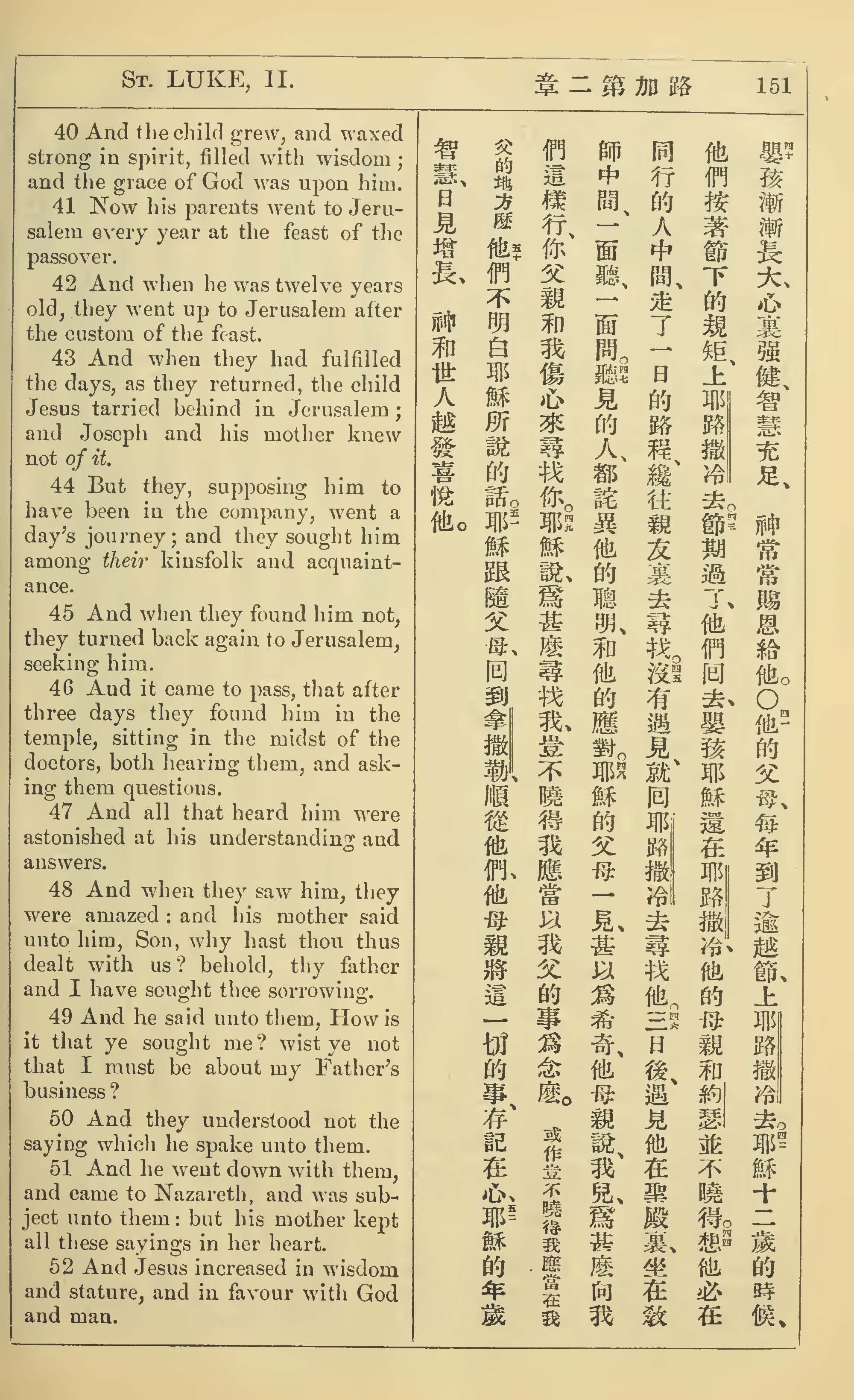 1902年新約全書(中英對照) 路加福音 2 章 40 節到 2 章 52 節